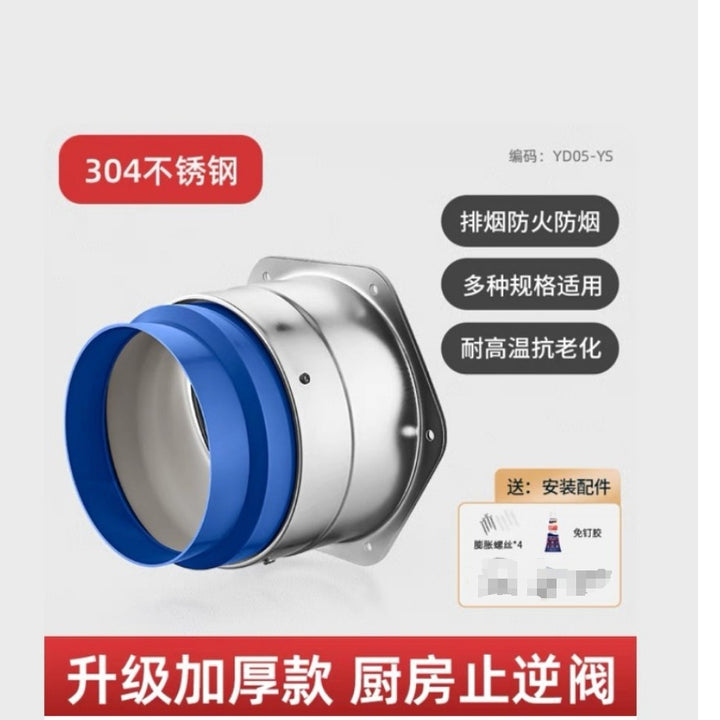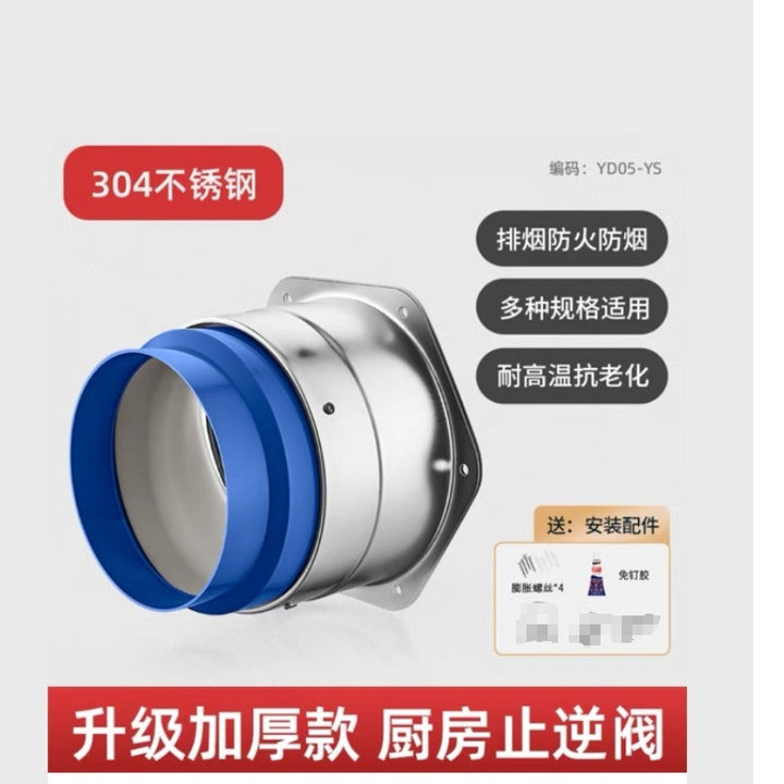 Universal stainless steel flue check valve, kitchen special check valve range hood, smoke-proof treasure pipe one-way