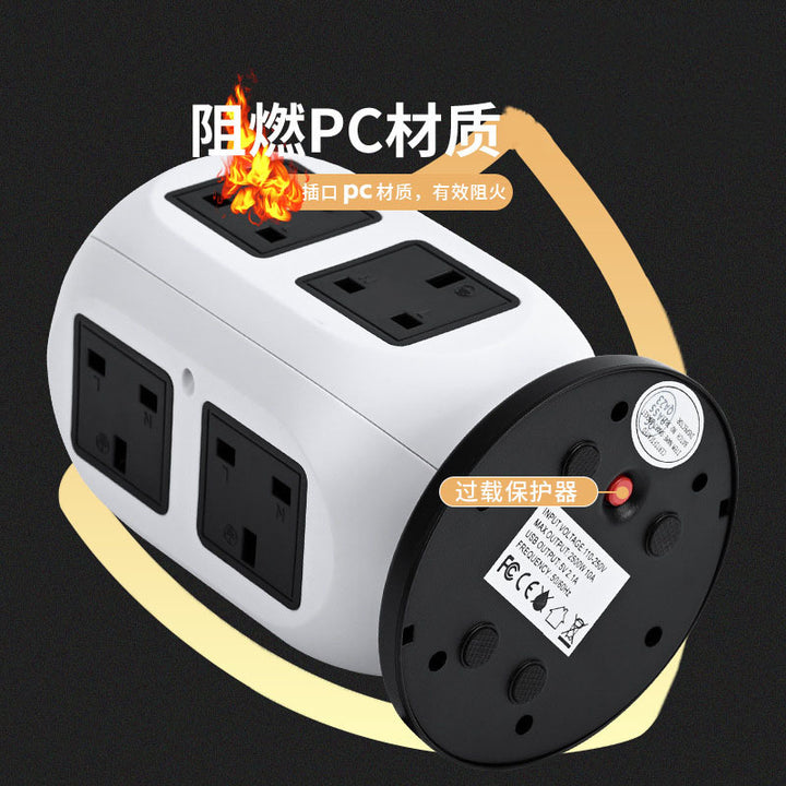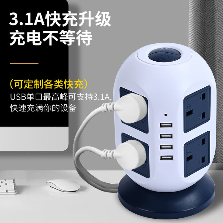 US standard vertical socket household with 4USB British standard power socket lightning protection and overload plug large South African hole socket