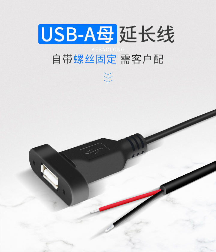 USB-A female cable with screw fixing nut usb female head single head cable usb bus