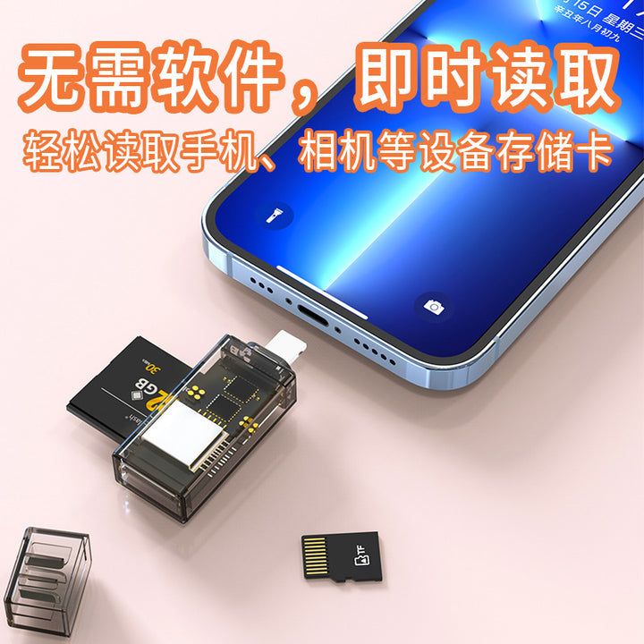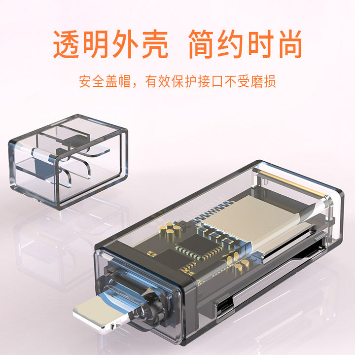 Type-c to sd/tf tea transparent card reader, Pingguo to sd/tf tea transparent color card reader, USB to sd/tf tea transparent card reader, Type-c + USB to sd/tf tea transparent card reader, Type-c + flat fruit to sd/tf tea transparent color card reader, USB + apple to sd/tf tea transparent card reader |