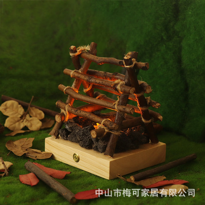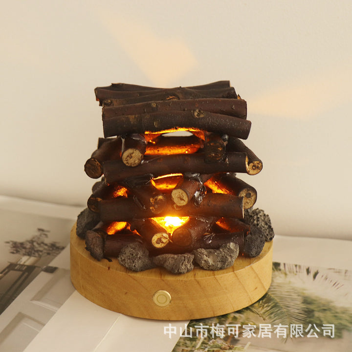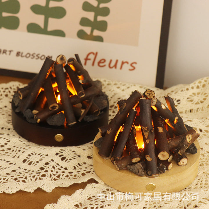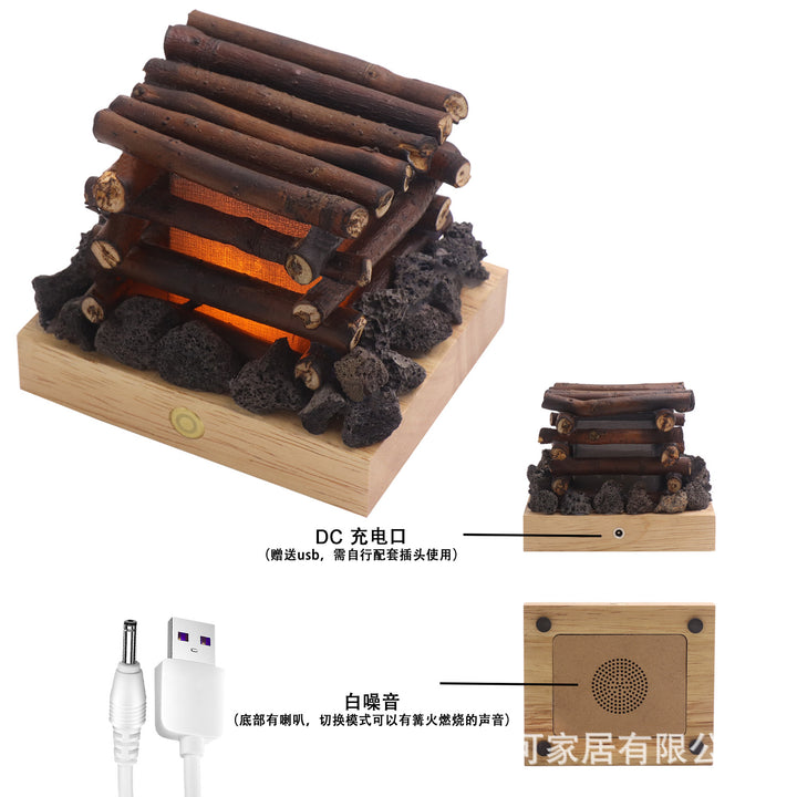 USB charging warm light ambient light white noise desktop ornament solid wood branches bonfire night light gift for friends