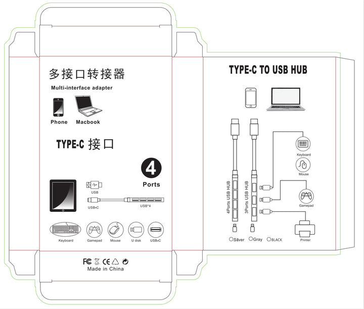 Typec One to Four 3.0 (Silver), Typec One to Four 3.0 (grey), Packing box + 0.5, USB One to Four 3.0 (Silver), USB One-to-Four 3.0 (Grey) |