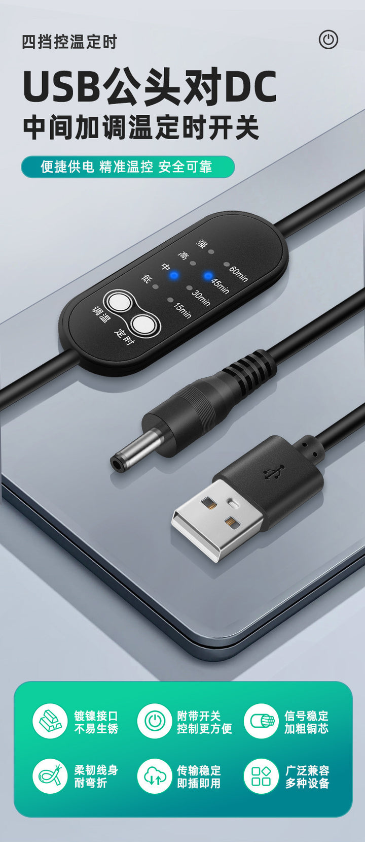Short body USB male + temperature regulation timing switch pair DC35135 black tuning fork |