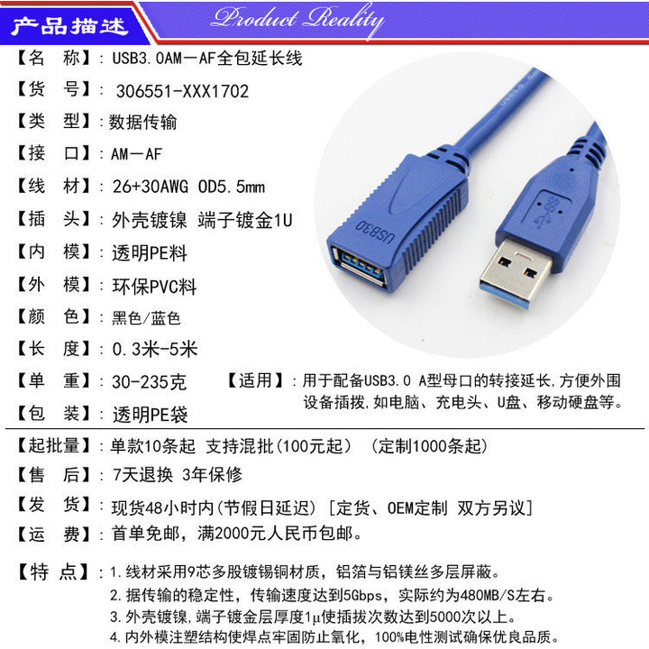 usb3.0 male to female computer hard u disk mouse keyboard extension cable compatible with usb2.0 interface data extension cable