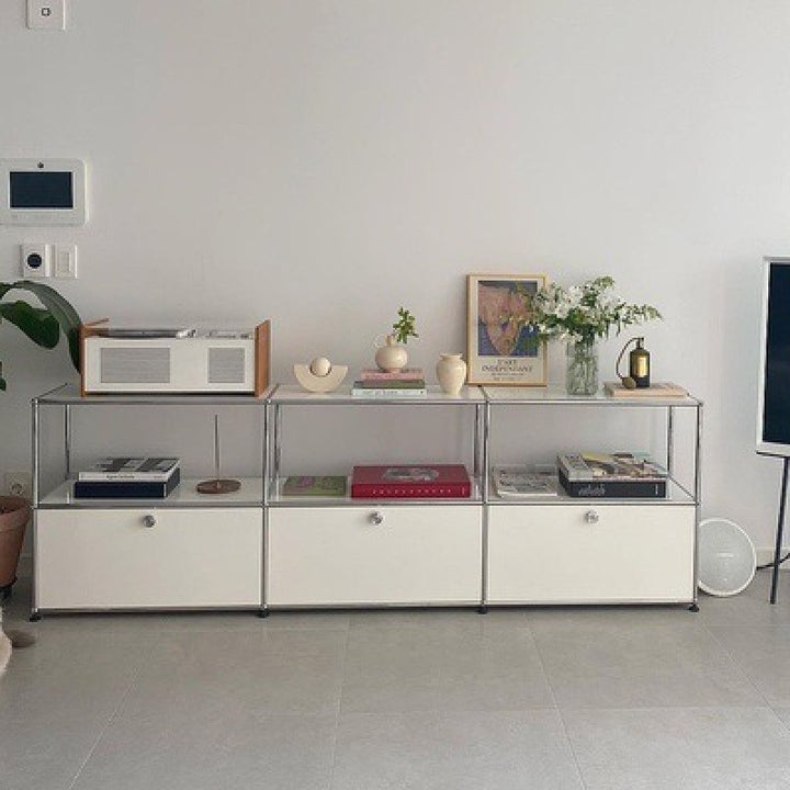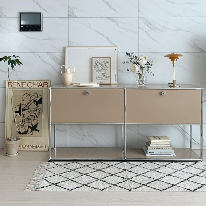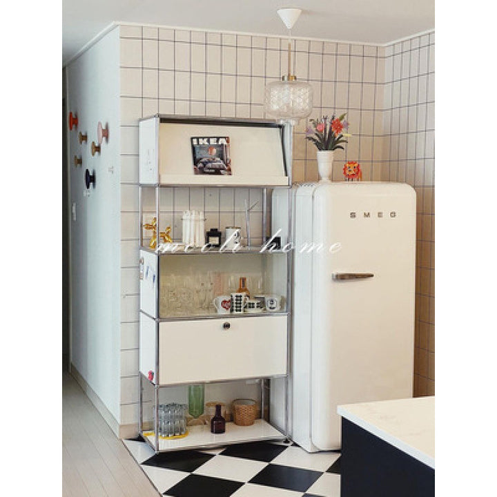 USM Cabinet Module Combination Cream Wind TV Cabinet Medium Ancient Stainless Steel Dining Side Cabinet Internet celebrity chest cabinet Shelf Side...