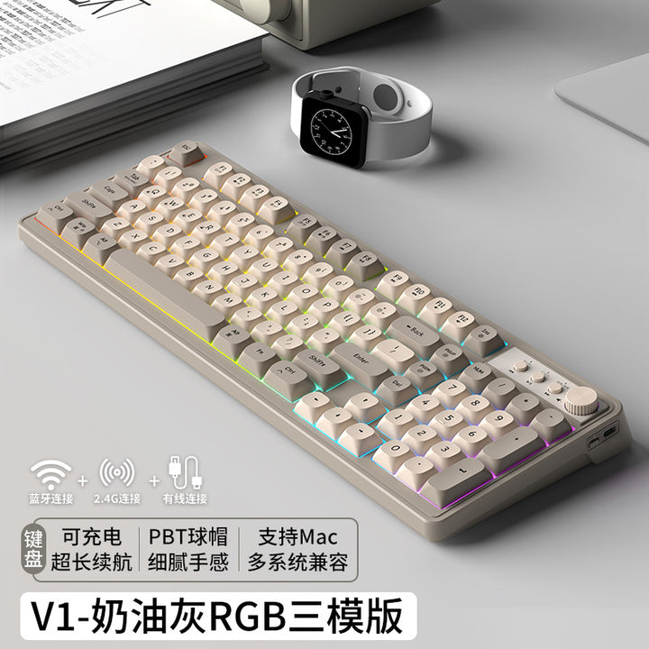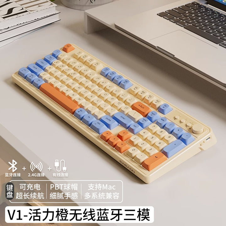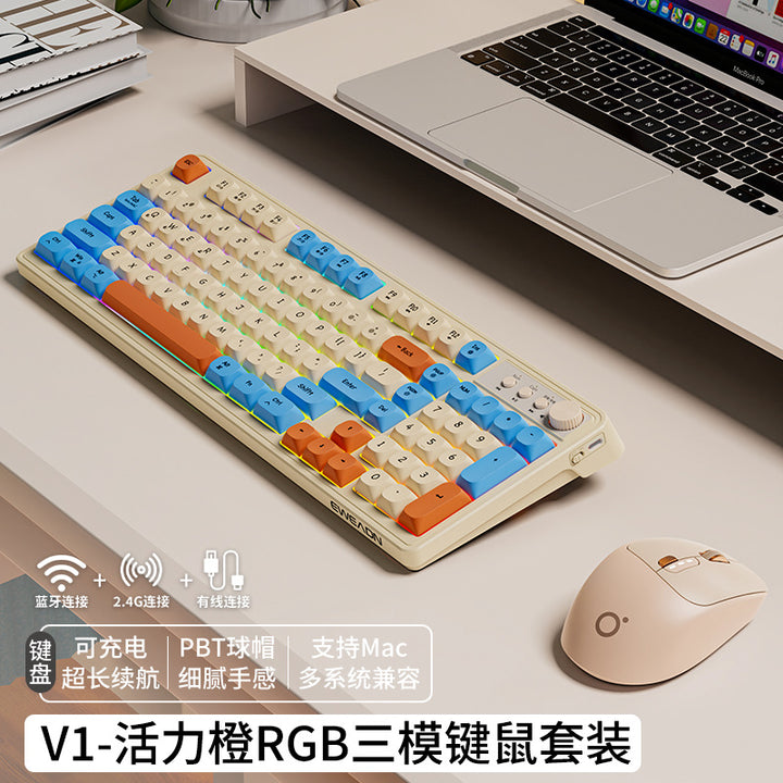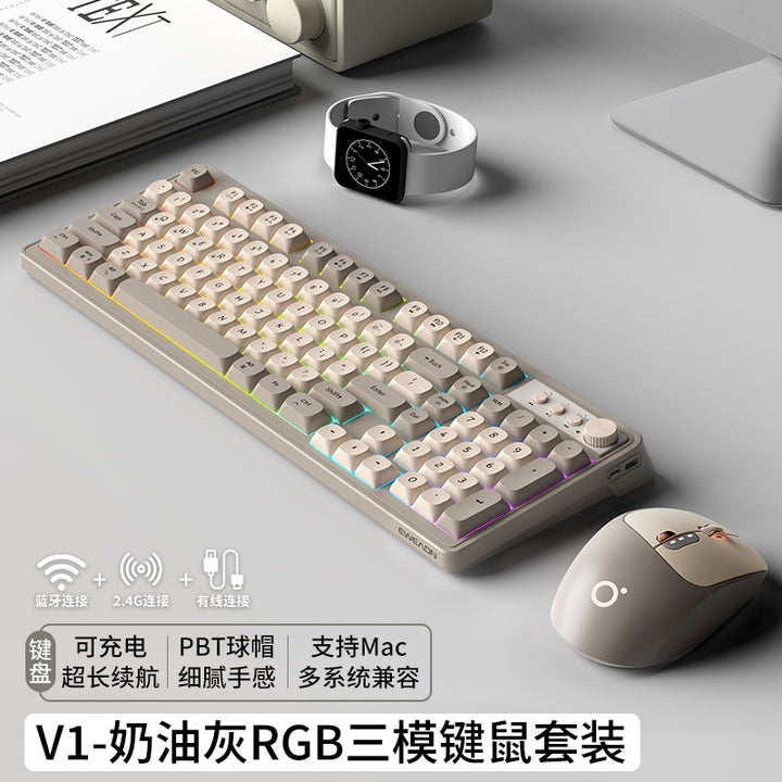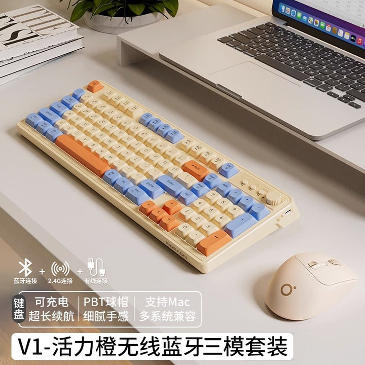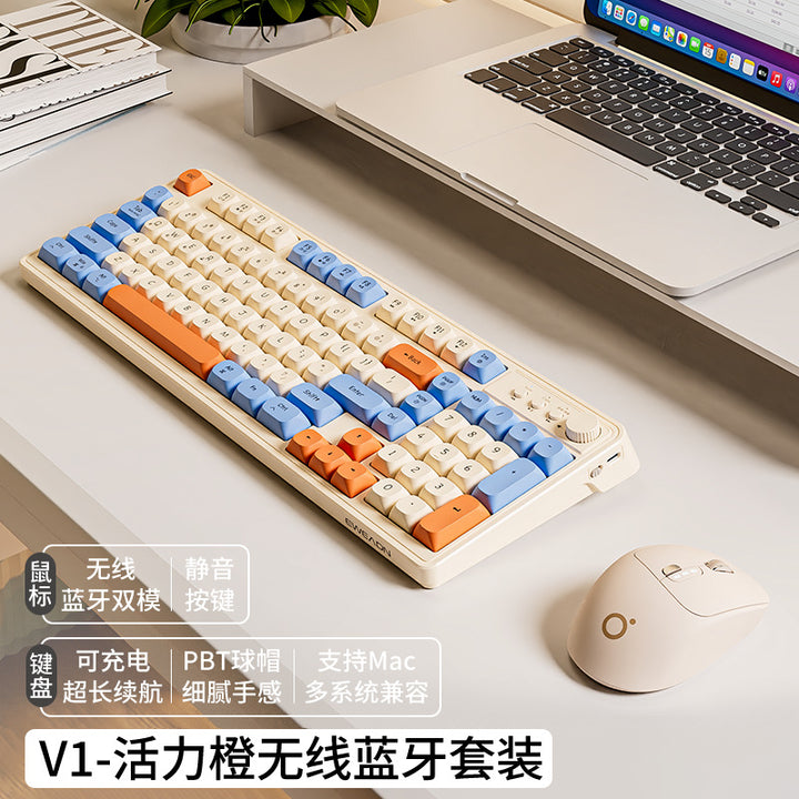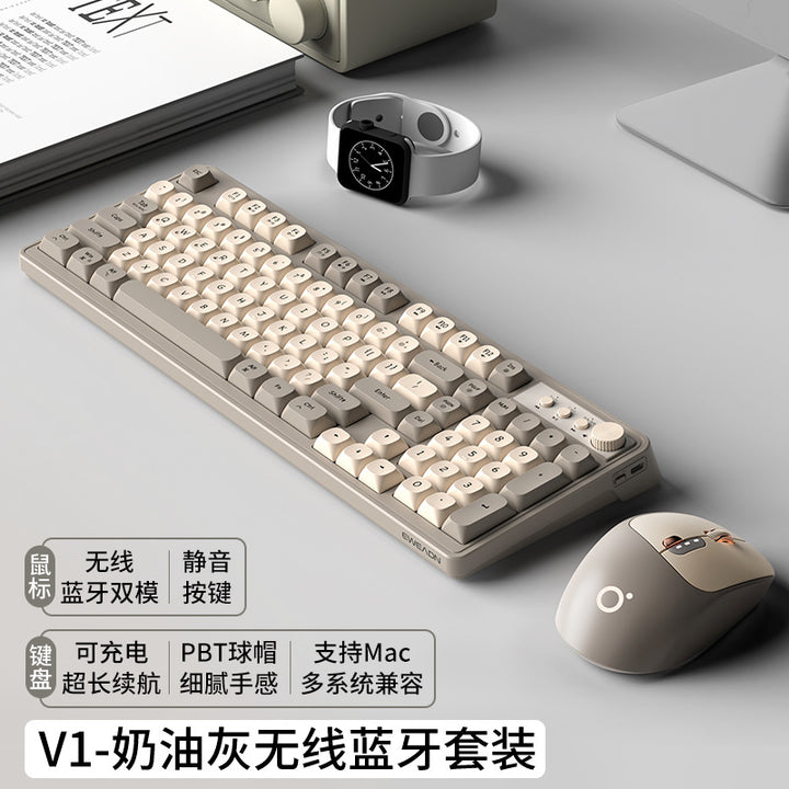 V1 wireless keyboard and mouse set silent mechanical feel girls computer office game bluetooth keyboard and mouse