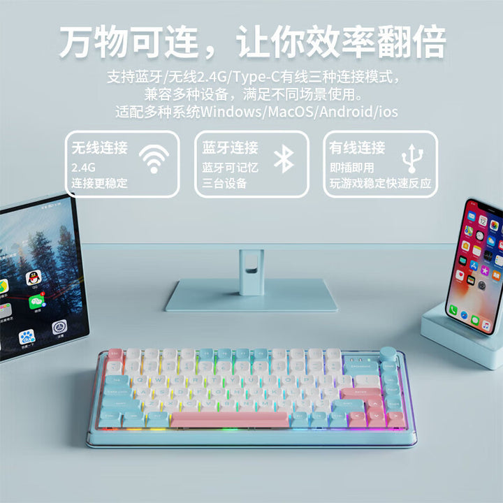 V82PR0 wireless three-mode customized mechanical keyboard high-value office e-sports game RGB lamp computer peripherals