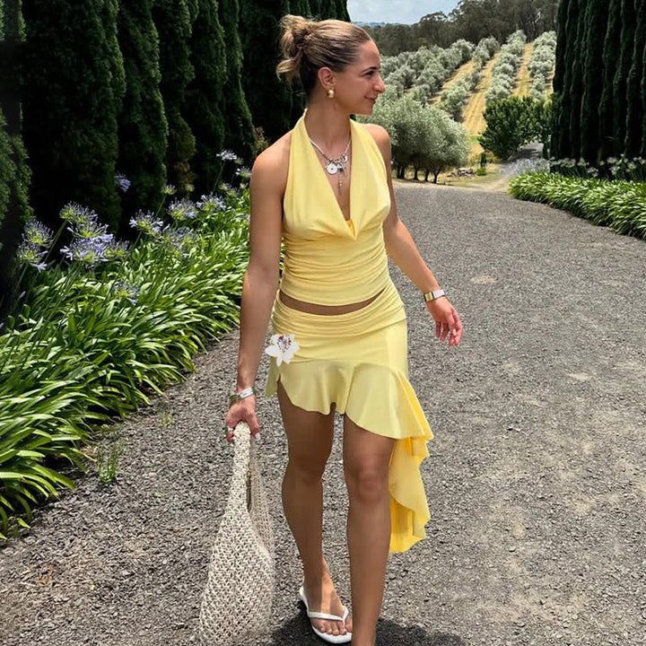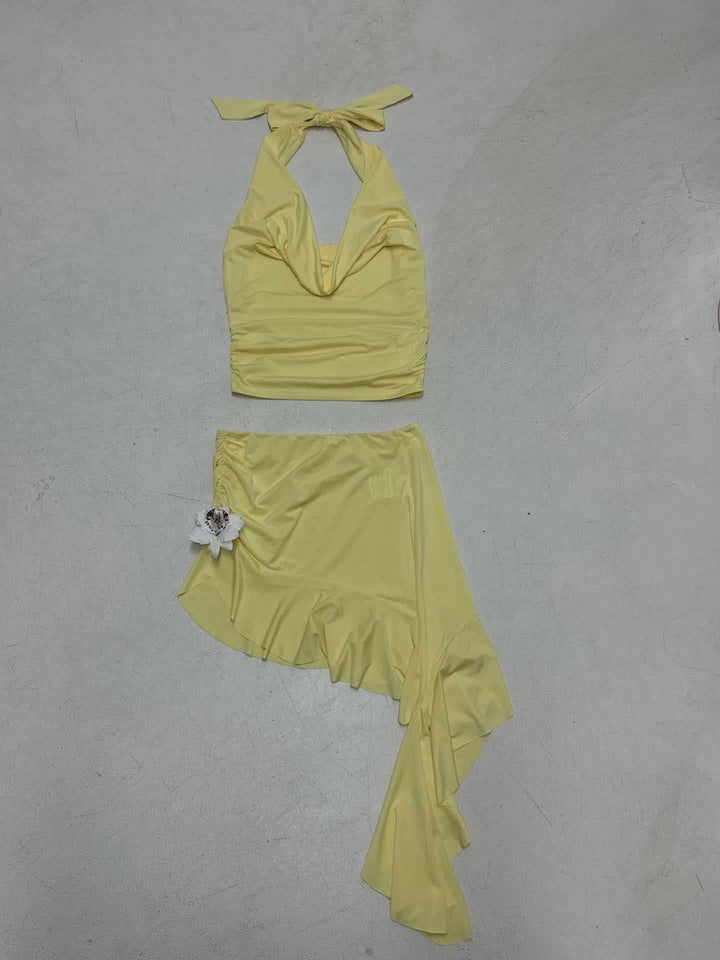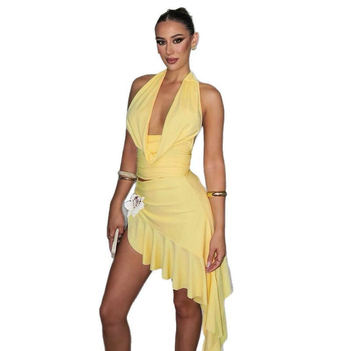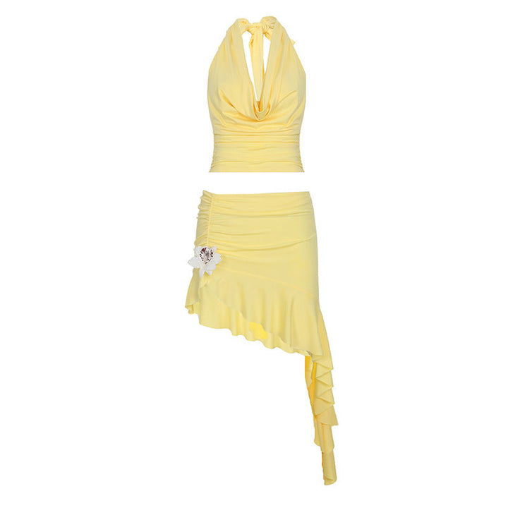 vacation style summer sexy swinging collar halter irregular three-dimensional flower ruffle e...