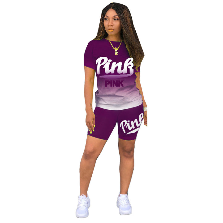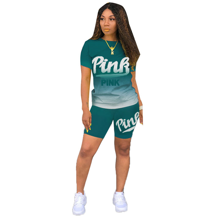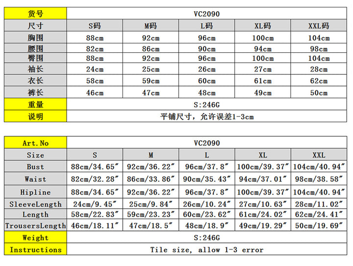 VC2090 Hot Sale European and American Casual Fashion Crew Neck Slim Printing Two-piece Set