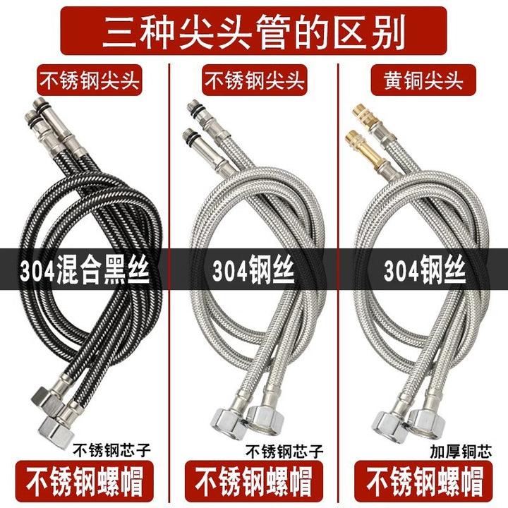 Vegetable basin basin faucet with connecting pipe 304 stainless steel braided pointed hot and cold water inlet pipe hose thickened