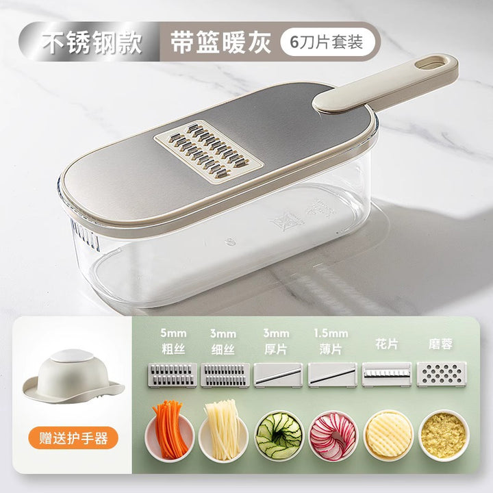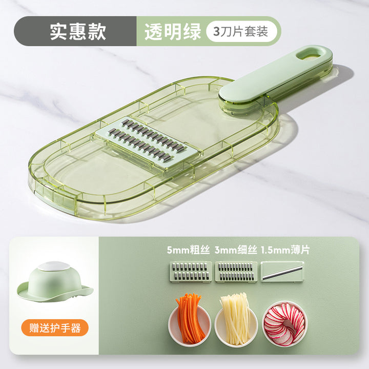 Transparent Green - Five-piece Set [3 Blades + Hand Guard], Stainless steel panel, warm gray - five-piece set [3 blades + hand guard], Transparent Green - Eight-piece set [6 blades + hand guard], Stainless steel panel, warm gray - eight-piece set [6 blades + hand guard], Transparent Green - Six-piece Set [3 Blades + Hand Guard + Vegetable Storage Box], Stainless steel panel, warm gray - six-piece set [3 blades + hand guard + vegetable storage box], Transparent Green - Nine-piece Set [6 Blades + Hand Guard + Vegetable Storage Box], Stainless steel panel, warm gray - nine-piece set [6 blades + hand guard + vegetable storage box], Matcha Green, Solid Color - Five-piece Set [3 Blades + Hand Guard] |