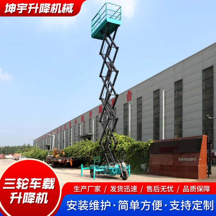 Vehicle-mounted scissor lift platform aerial work mobile hydraulic electric three-wheel lift