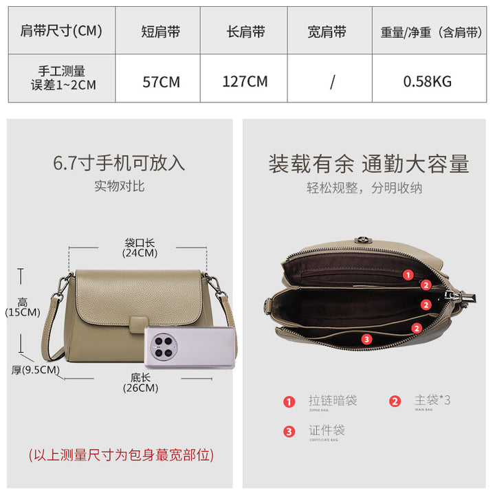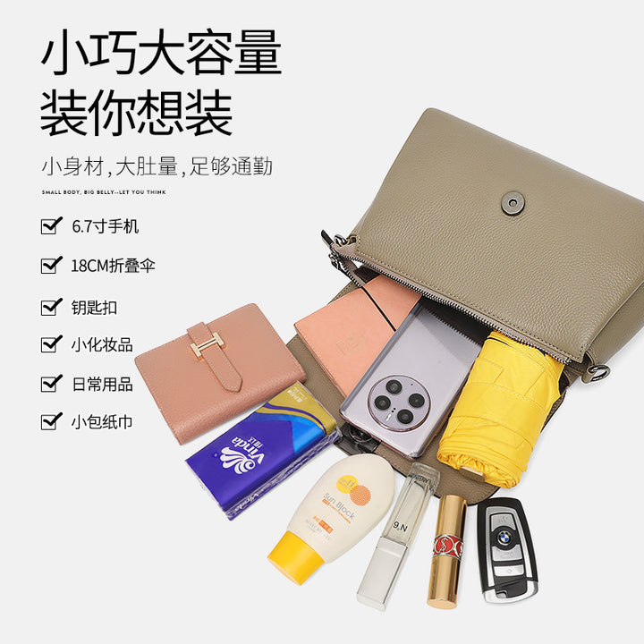 Versatile fashion leather messenger bag women's 2025 new trendy summer women's shoulder backpack first layer cowhide small square bag