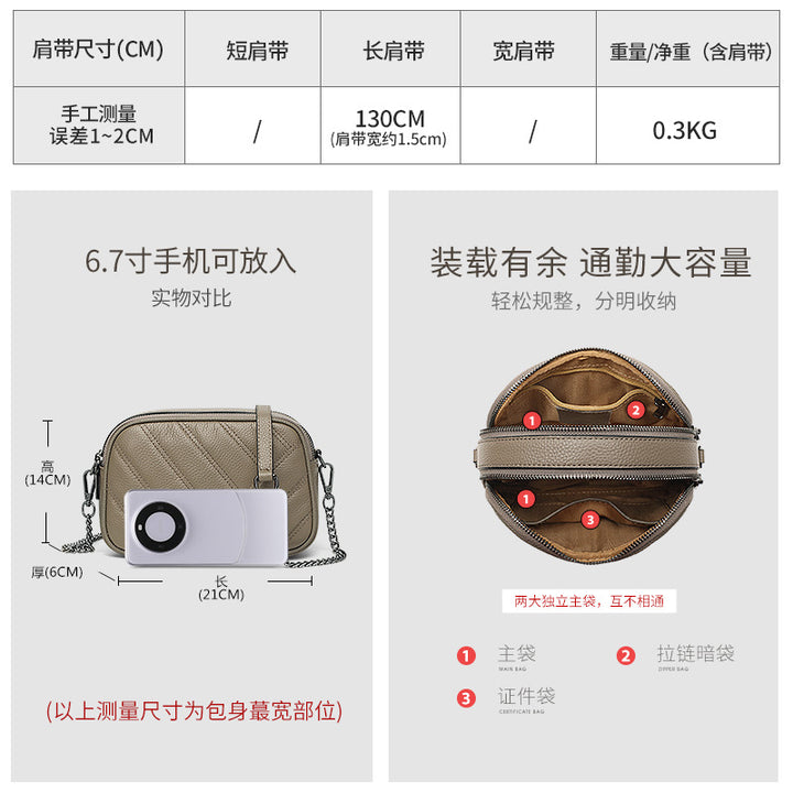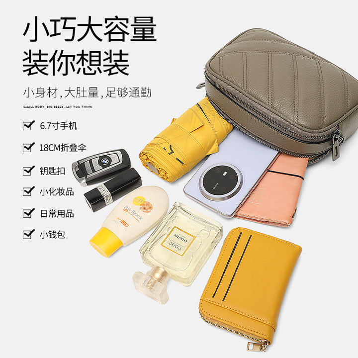 Versatile leather shoulder bag women's 2025 new trendy fashion first-layer cowhide messenger bag casual women's small square bag
