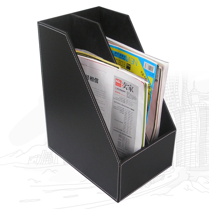 Vertical office file rack Double file storage rack Desktop data sorting and storage Leather file frame Wholesale