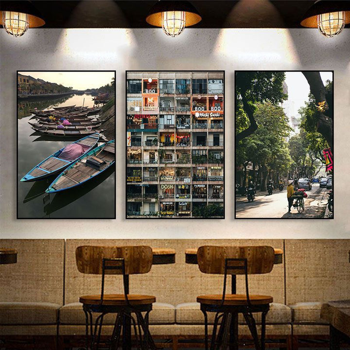 Vietnamese Landscape Decorative Painting South East Asia Restaurant Hotel Painting Vietnamese Style Restaurant Street View Architecture Mural