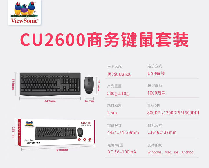 ViewSonic CU2600 wired keyboard and mouse set multimedia home office game USB wired waterproof keyboard and mouse