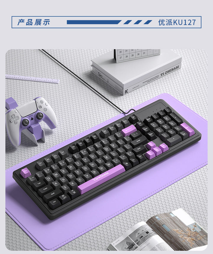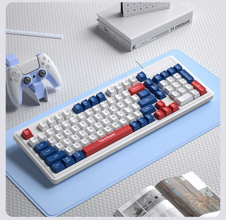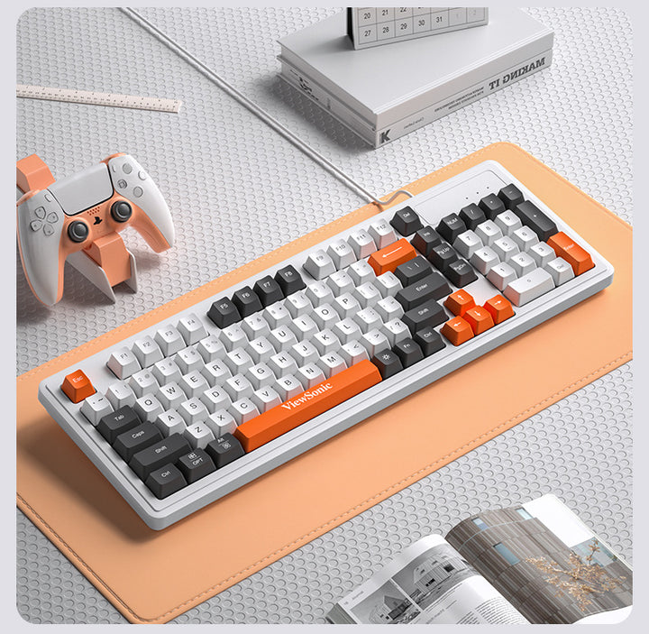 ViewSonic KU127 three-color matching mechanical feel keyboard 98-key column wired office game...