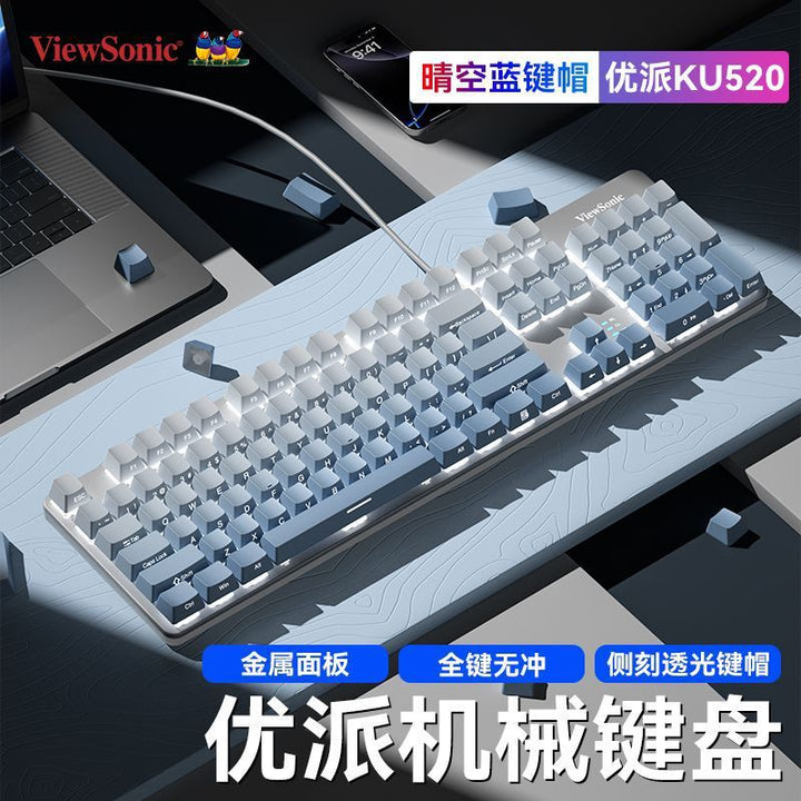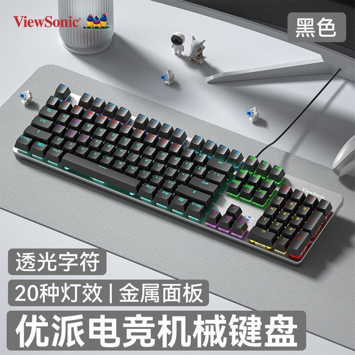 ViewSonic KU520pro real mechanical keyboard e-sports game green axis full key no punch colorf...