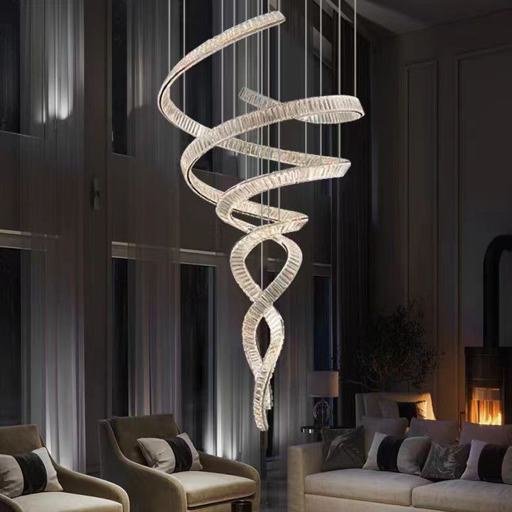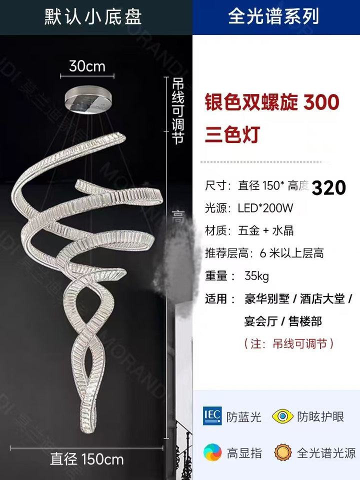 Villa empty living room duplex stairs mermaid crystal chandelier light luxury hotel lobby apartment banquet project lamp
