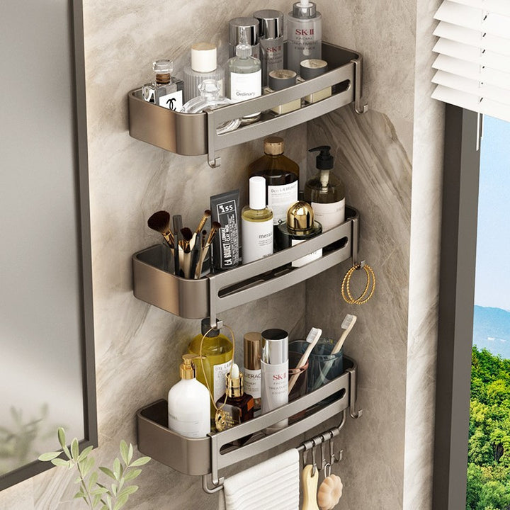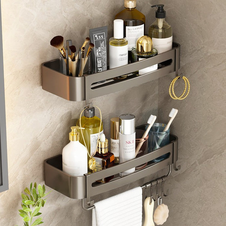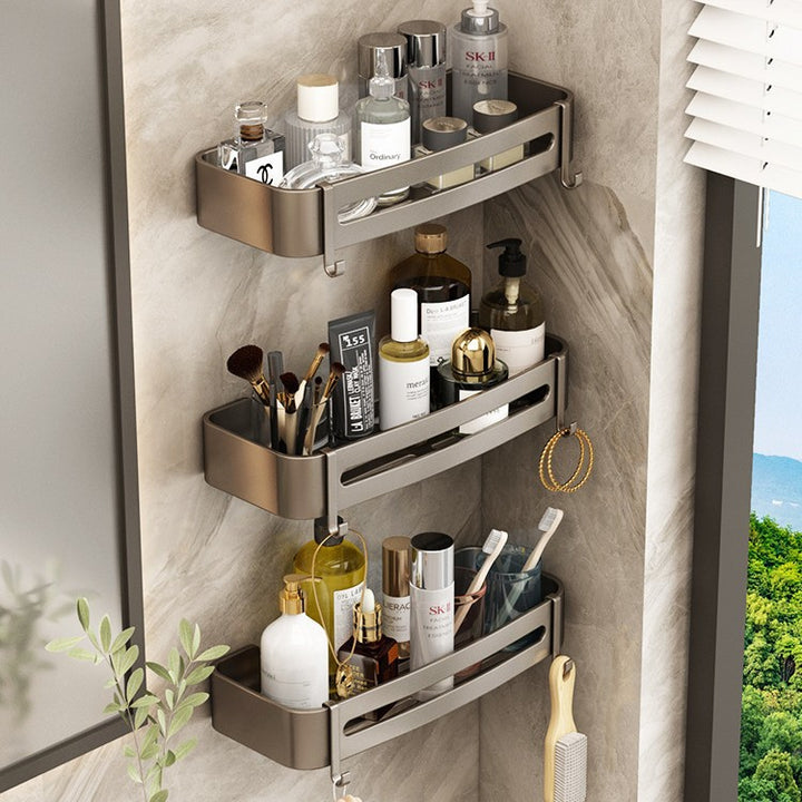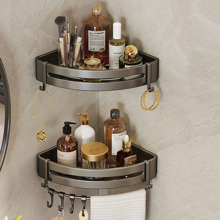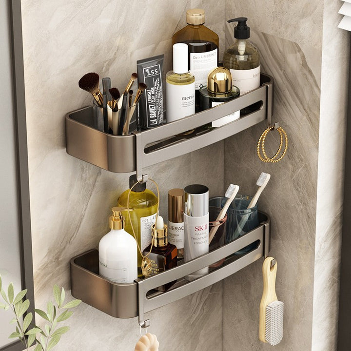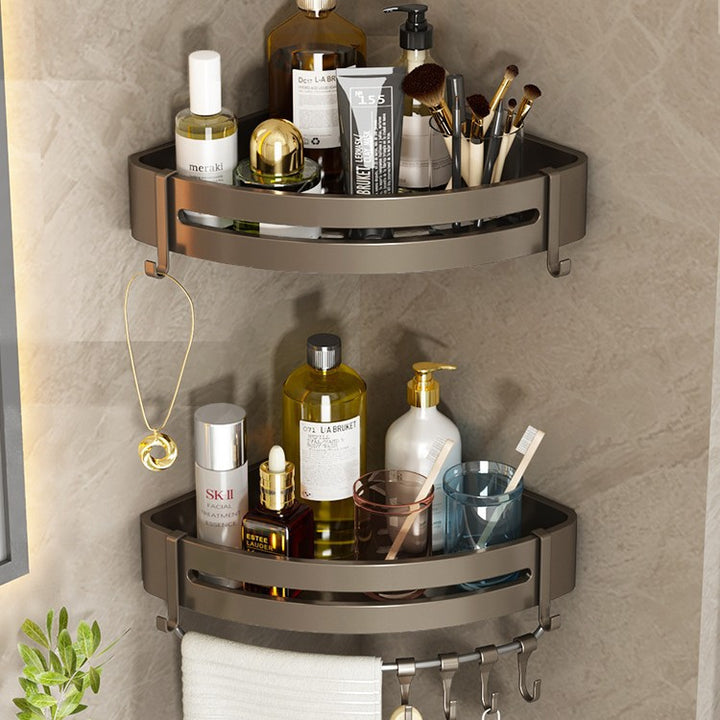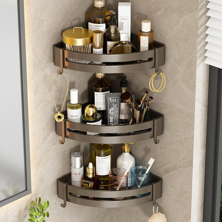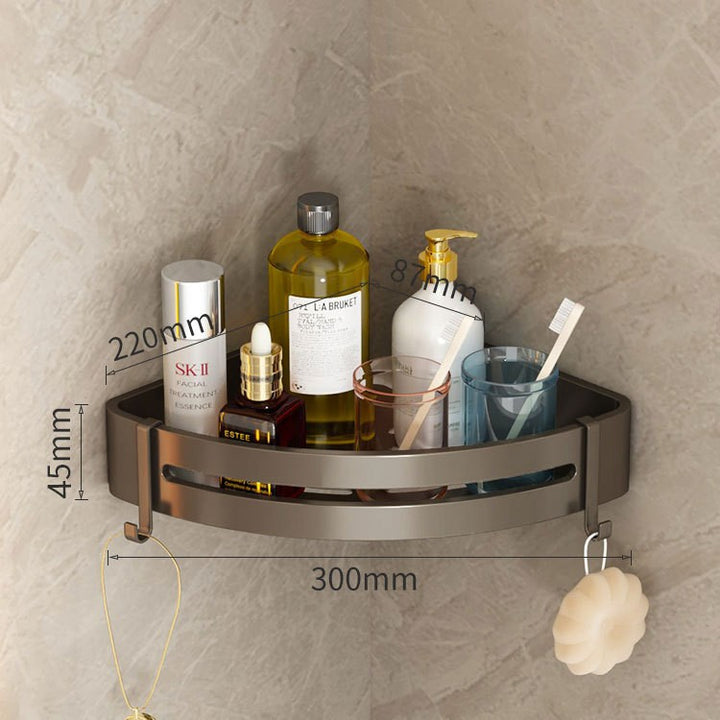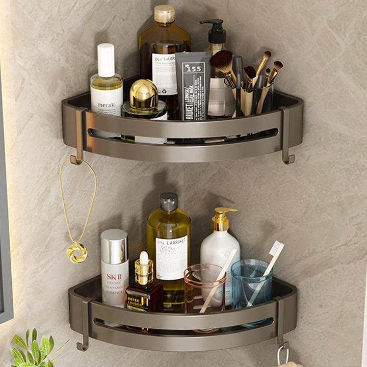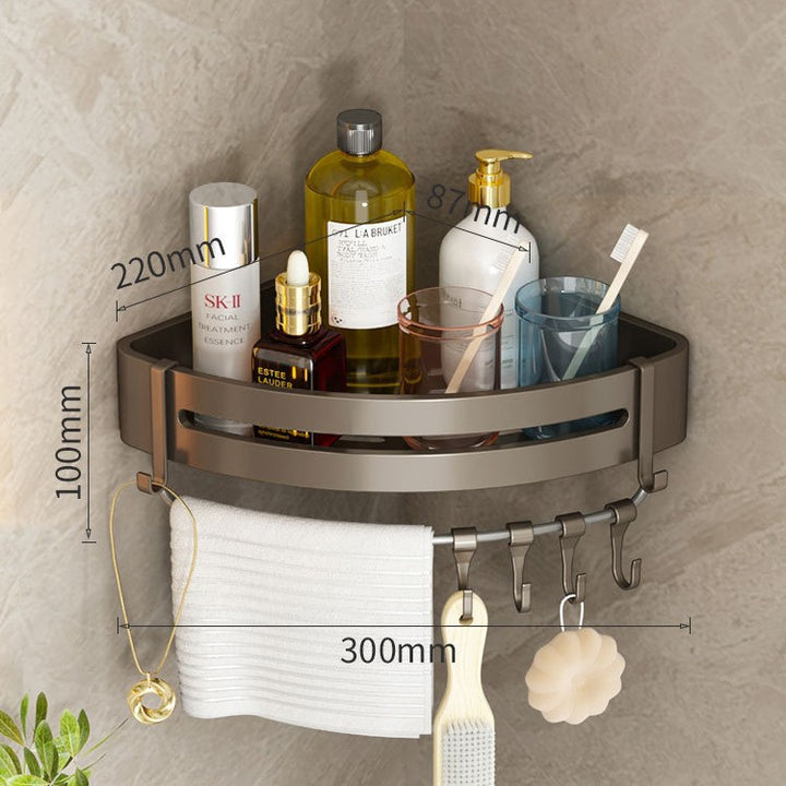 Vimeijia, non-punching space aluminum bathroom pendant, double-layer triangular basket storage rack in the corner of the bathroom