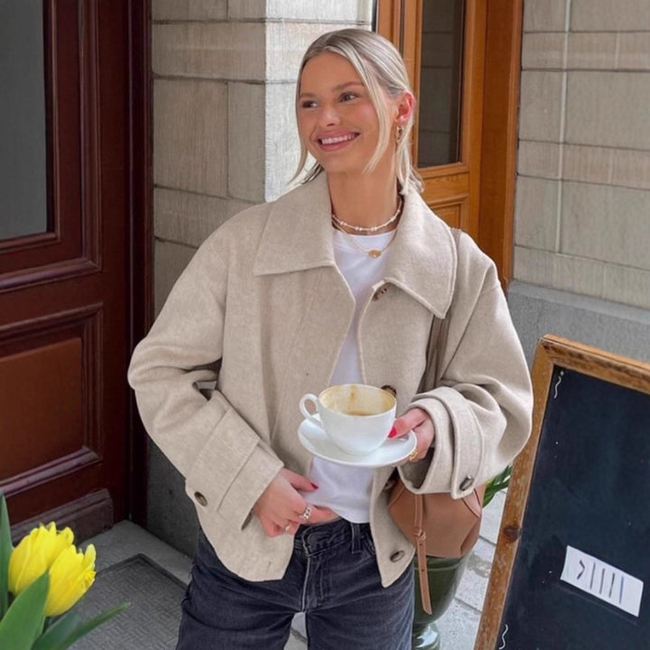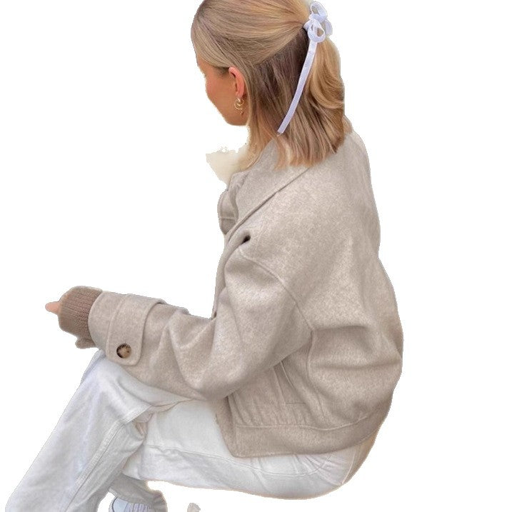 Vintage Barn style khaki woolen jacket women's 2025 winter new simple commuter lapel jacket women's clothing