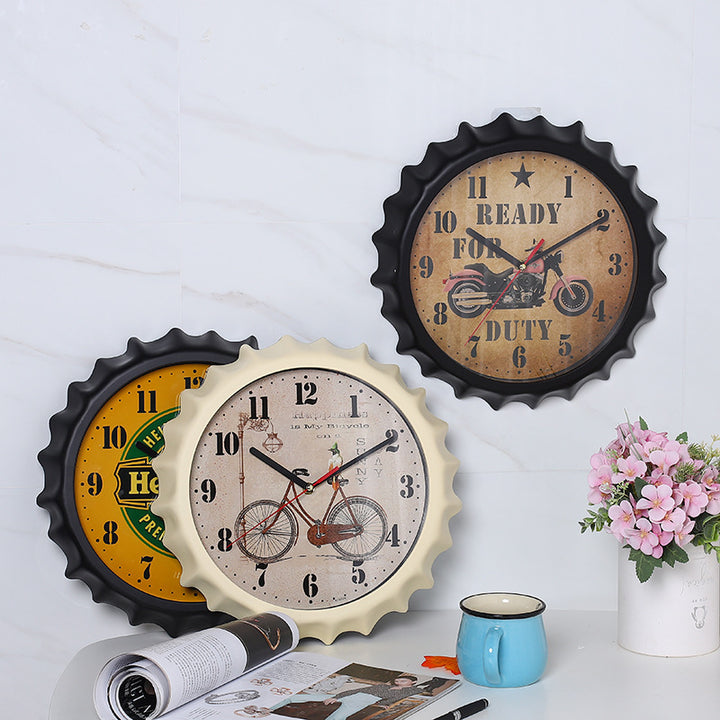 Vintage bottle cap wall clock 14-inch clock simple living room personalized home silent electronic quartz clock A15504