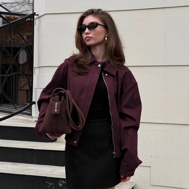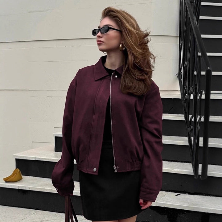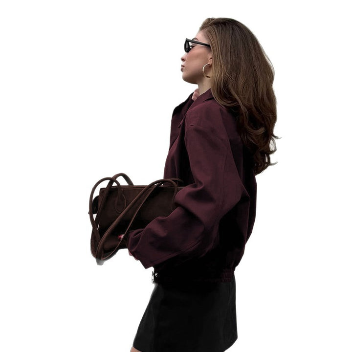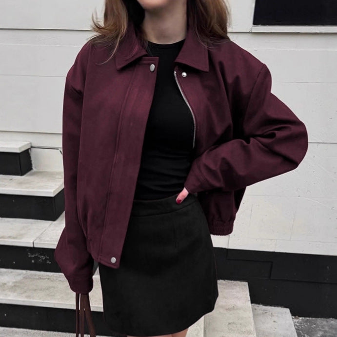 Vintage burgundy suede jacket women's 2025 winter design sense casual tooling jacket top European and American women's clothing