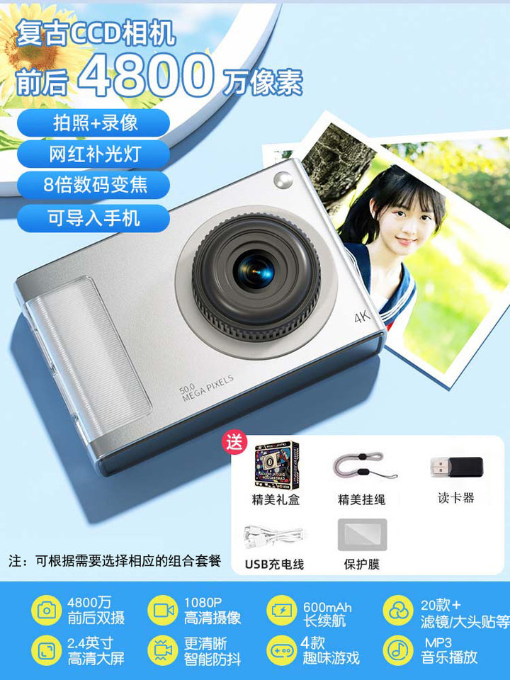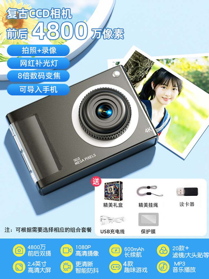 [Xiaohongshu Star Preferred] ► Recommended by major bloggers ◆ Millions of users to test it in person, and tens of millions of fans to idol the same style. - Official standard, [Xiaohongshu Star Preferred] ► Recommended by major bloggers ◆ Millions of users to test their idols in person ► Millions of fans of the same style ► -32G memory card + USB card reader +, [Xiaohongshu Star Preferred] ► Recommended by major bloggers ◆ Millions of users personally test ► Millions of fans idol of the same style ► -64G memory card + USB card reader +, [Reminder] The official standard does not have a memory card, you can move to the details page to view the detailed instructions, and you can choose the corresponding package on demand - the official, [Reminder] The official standard does not have a memory card. You can move to the details page to view the detailed instructions. You can choose the corresponding package on demand - 32G memory card +, [Reminder] The official standard does not have a memory card. You can move to the details page to view the detailed instructions. You can choose the corresponding package on demand - 64G memory card +, 月光白(4800W像素2.4寸高清屏+可传手机+多种卡通边框)-官方标配, 月光白(4800W像素2.4寸高清屏+可传手机+多种卡通边框)-32G内存卡+USB读卡器+贴纸+O, 月光白(4800W像素2.4寸高清屏+可传手机+多种卡通边框)-64G内存卡+USB读卡器+贴纸+O, 星空黑(4800W像素2.4寸高清屏+可传手机+多种卡通边框)-官方标配, 星空黑(4800W像素2.4寸高清屏+可传手机+多种卡通边框)-32G内存卡+USB读卡器+贴纸+O, 星空黑(4800W像素2.4寸高清屏+可传手机+多种卡通边框)-64G内存卡+USB读卡器+贴纸+O, 科技银(4800W像素2.4寸高清屏+可传手机+多种卡通边框)-官方标配, 科技银(4800W像素2.4寸高清屏+可传手机+多种卡通边框)-32G内存卡+USB读卡器+贴纸+O, 科技银(4800W像素2.4寸高清屏+可传手机+多种卡通边框)-64G内存卡+USB读卡器+贴纸+O, 可爱粉(4800W像素2.4寸高清屏+可传手机+多种卡通边框)-官方标配, 可爱粉(4800W像素2.4寸高清屏+可传手机+多种卡通边框)-32G内存卡+USB读卡器+贴纸+O, 可爱粉(4800W像素2.4寸高清屏+可传手机+多种卡通边框)-64G内存卡+USB读卡器+贴纸+O, Moonlight White upgrade [dual-lens switching + time-lapse photography + slow motion + smiley face rating, etc.] (18 photo frames + 8 filters, etc.) - official standard, Moonlight White upgrade [dual-lens switching + time-lapse photography + slow motion + smiley face rating, etc.] (18 photo frames + 8 filters, etc.) -32G memory, Moonlight White upgrade [dual lens switching + time-lapse photography + slow motion + smiley face rating, etc.] (18 photo frames + 8 filters, etc.) -64G memory, Technology silver upgrade [dual-lens switching + time-lapse photography + slow motion + smiley face rating, etc.] (18 photo frames + 8 filters, etc.) - official standard, Technology Silver Upgraded [Dual Lens Switching + Delayed Photography + Slow Motion + Smiley Face Score, etc.] (18 photo frames + 8 filters, etc.) -32G memory, Technology Silver Upgraded [Dual Lens Switching + Delayed Photography + Slow Motion + Smiley Face Score, etc.] (18 photo frames + 8 filters, etc.) -64G memory, Cute powder upgrade [dual-lens switching + time-lapse photography + slow motion + smiley face rating, etc.] (18 photo frames + 8 filters, etc.) - official standard, 可爱粉升级款【双镜头切换+可延时摄影+慢动作+笑脸评分等】(18张拍照相框+8种滤镜等)-32G内存, 可爱粉升级款【双镜头切换+可延时摄影+慢动作+笑脸评分等】(18张拍照相框+8种滤镜等)-64G内存, 星空黑升级款【双镜头切换+可延时摄影+慢动作+笑脸评分等】(18张拍照相框+8种滤镜等)-官方标配, 星空黑升级款【双镜头切换+可延时摄影+慢动作+笑脸评分等】(18张拍照相框+8种滤镜等)-32G内存, 星空黑升级款【双镜头切换+可延时摄影+慢动作+笑脸评分等】(18张拍照相框+8种滤镜等)-64G内存, 精美礼盒套装(月光白)(升级款相机+专属浪漫礼盒+多重好礼相赠)-32G内存卡+USB读卡器+贴纸+, 精美礼盒套装(月光白)(升级款相机+专属浪漫礼盒+多重好礼相赠)-64G内存卡+USB读卡器+贴纸+, 精美礼盒套装(星空黑)(升级款相机+专属浪漫礼盒+多重好礼相赠)-32G内存卡+USB读卡器+贴纸+, 精美礼盒套装(星空黑)(升级款相机+专属浪漫礼盒+多重好礼相赠)-64G内存卡+USB读卡器+贴纸+, 精美礼盒套装(科技银)(升级款相机+专属浪漫礼盒+多重好礼相赠)-32G内存卡+USB读卡器+贴纸+, 精美礼盒套装(科技银)(升级款相机+专属浪漫礼盒+多重好礼相赠)-64G内存卡+USB读卡器+贴纸+, 精美礼盒套装(可爱粉)(升级款相机+专属浪漫礼盒+多重好礼相赠)-32G内存卡+USB读卡器+贴纸+, 精美礼盒套装(可爱粉)(升级款相机+专属浪漫礼盒+多重好礼相赠)-64G内存卡+USB读卡器+贴纸+ |