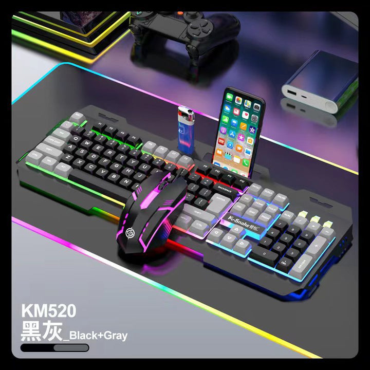 Viper KM520 mechanical feel keyboard mouse set luminous metal panel usb wired keyboard mouse ...