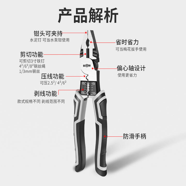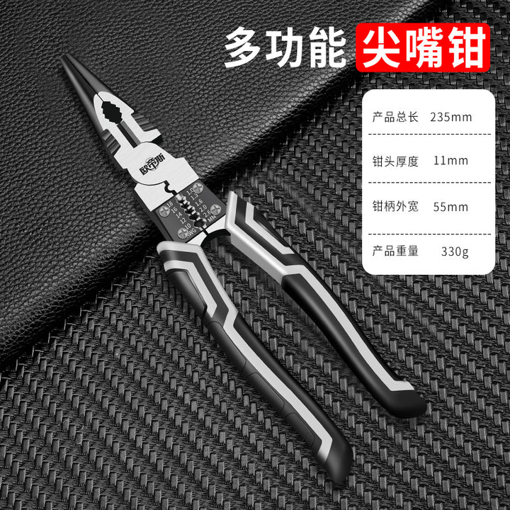 Vise steel wire pliers imported German industrial grade universal pointed nose pliers oblique pliers household electrician stripping wire broken st...
