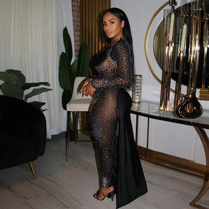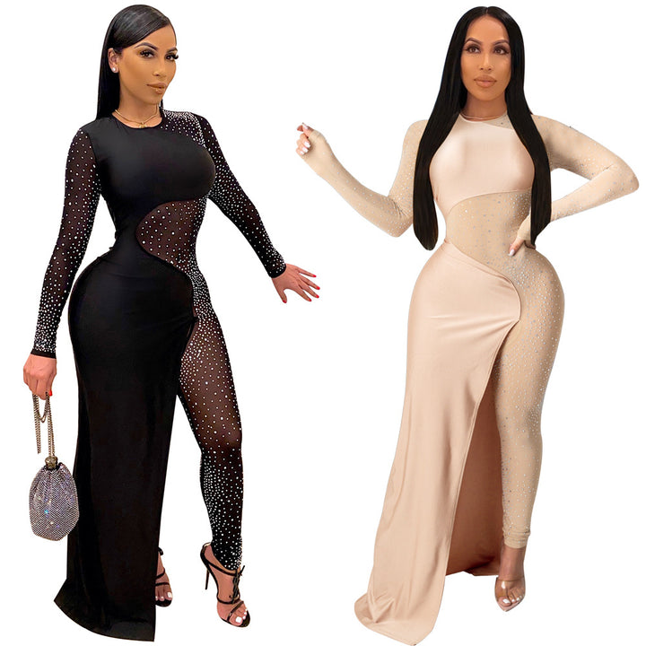 VK2071 hot European and American hot diamonds, perspective slim fit, skirt, onesie nightclub clothes