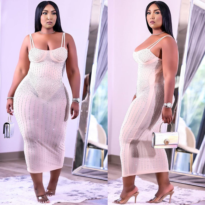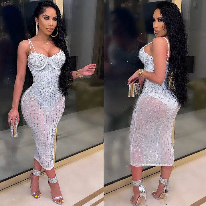 VK2072 European and American women's clothing, suspenders, hot diamonds, perspective, slim fit, dresses eBay