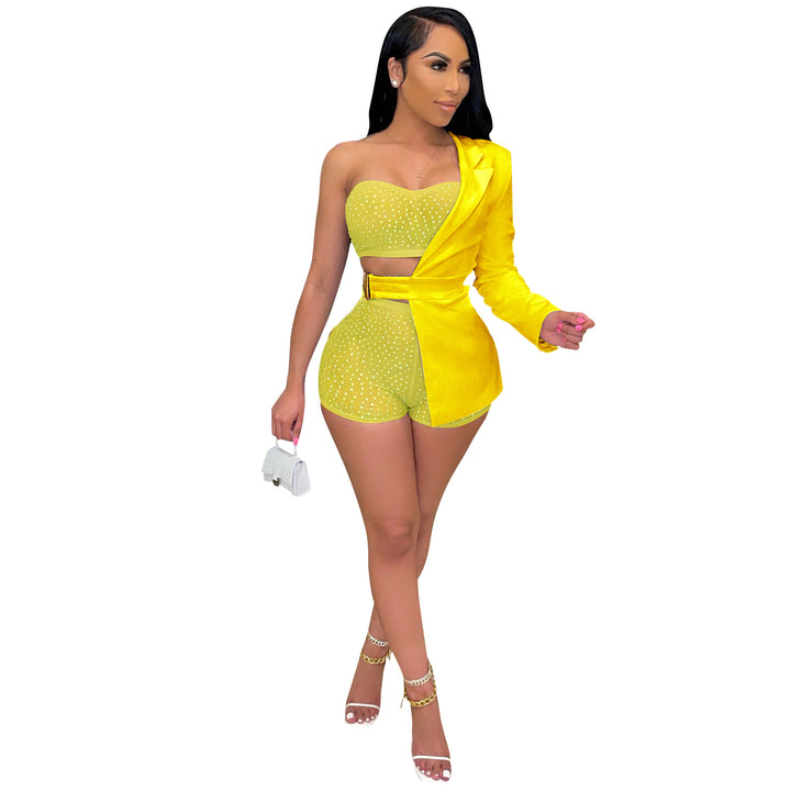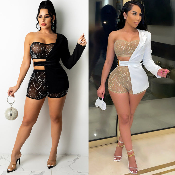 VK2105 European and American sexy slim hot diamonds, hot-selling short three-piece set in summer