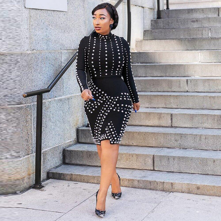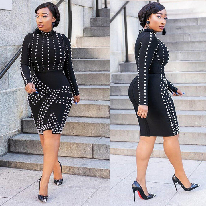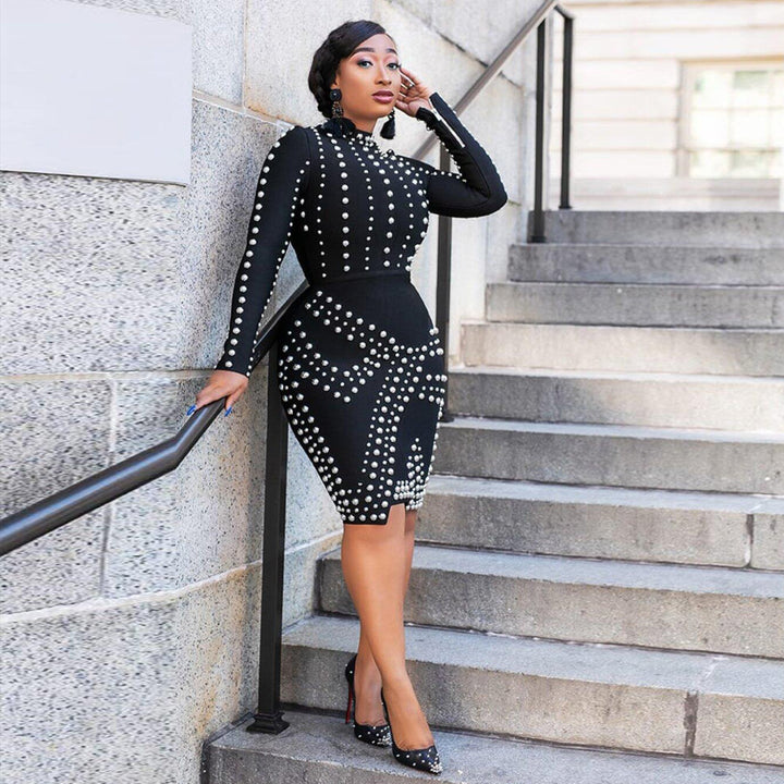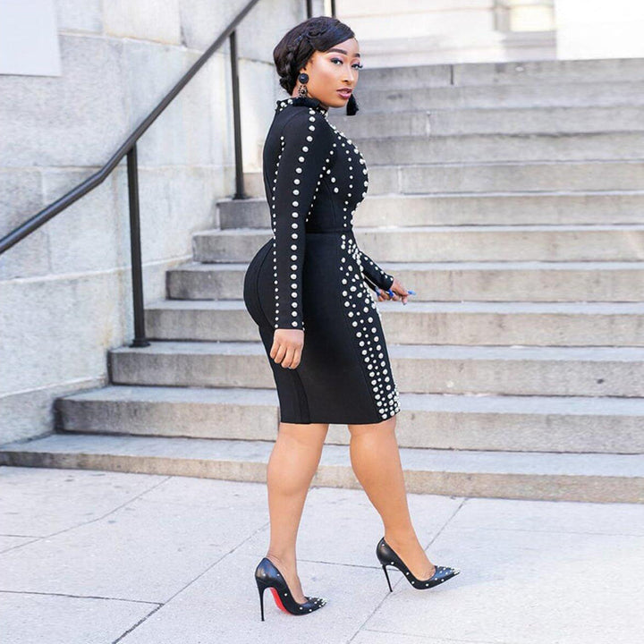 VK2257 European and American sexy, hot diamond long-sleeved slim dress nightclub