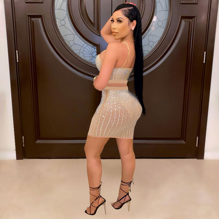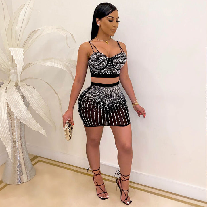 VK2382 diamond-set, chest wrap, sling, two-piece set of two colors, nightclub clothes.