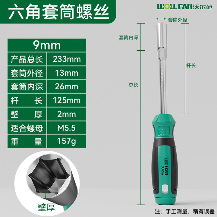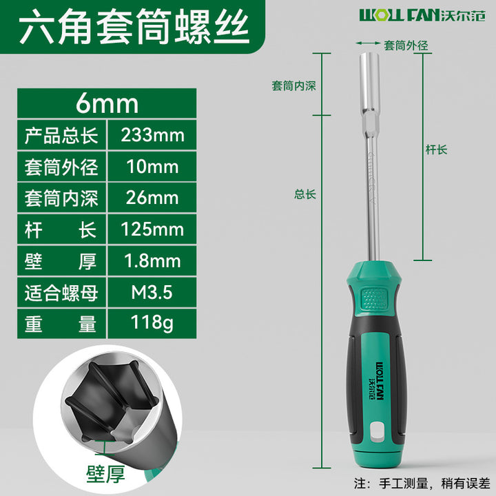Volfan Hexagon Sleeve Screwdriver Tools Full Set Nut Sleeve Driver Extended Batch Sleeve Wrench