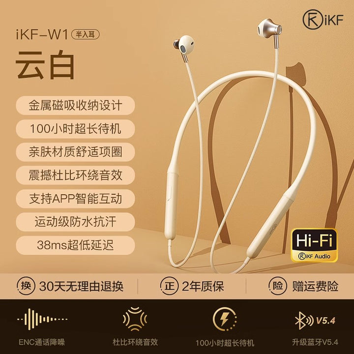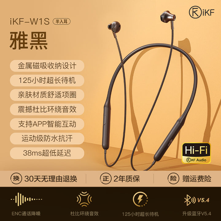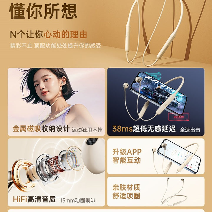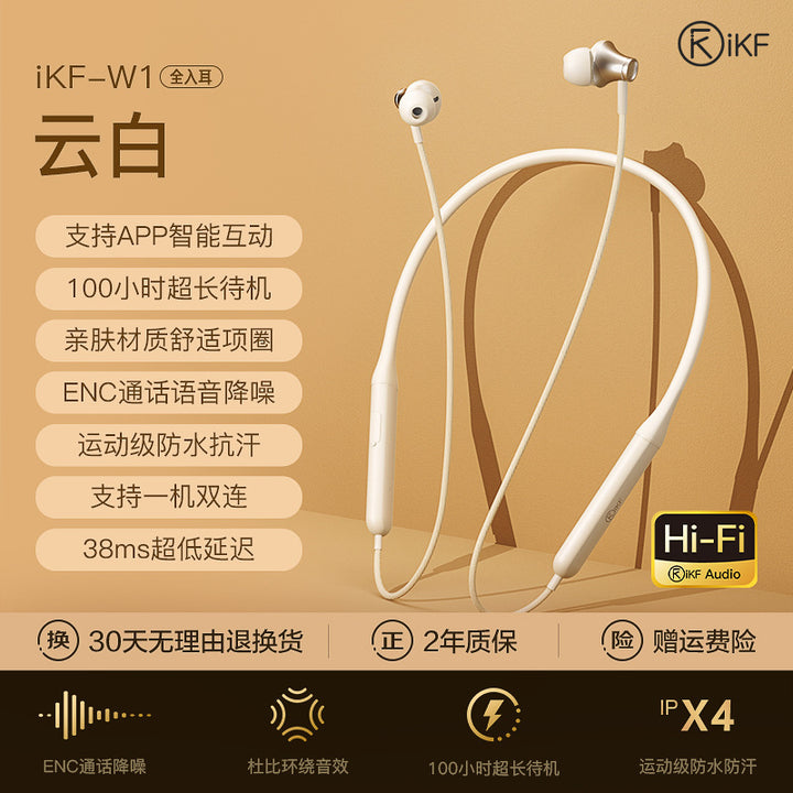 W1 sports neck Bluetooth headset wireless running in-ear long battery life noise reduction high-end fitness neck hanging type