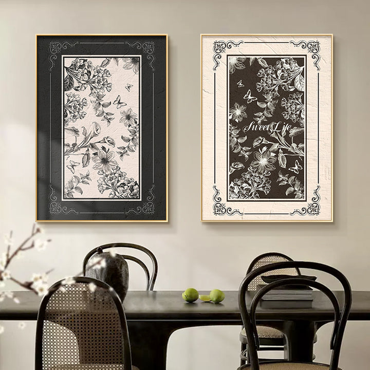 Wabi-sabi retro dining room decorative painting double mural light luxury high sense living room background wall chest desktop display painting