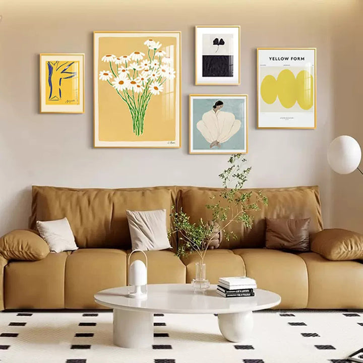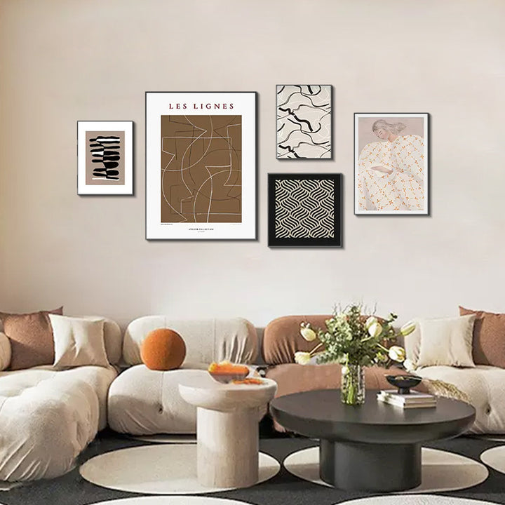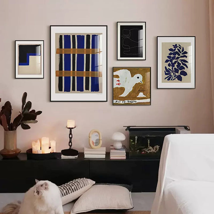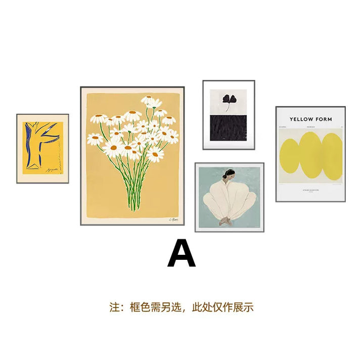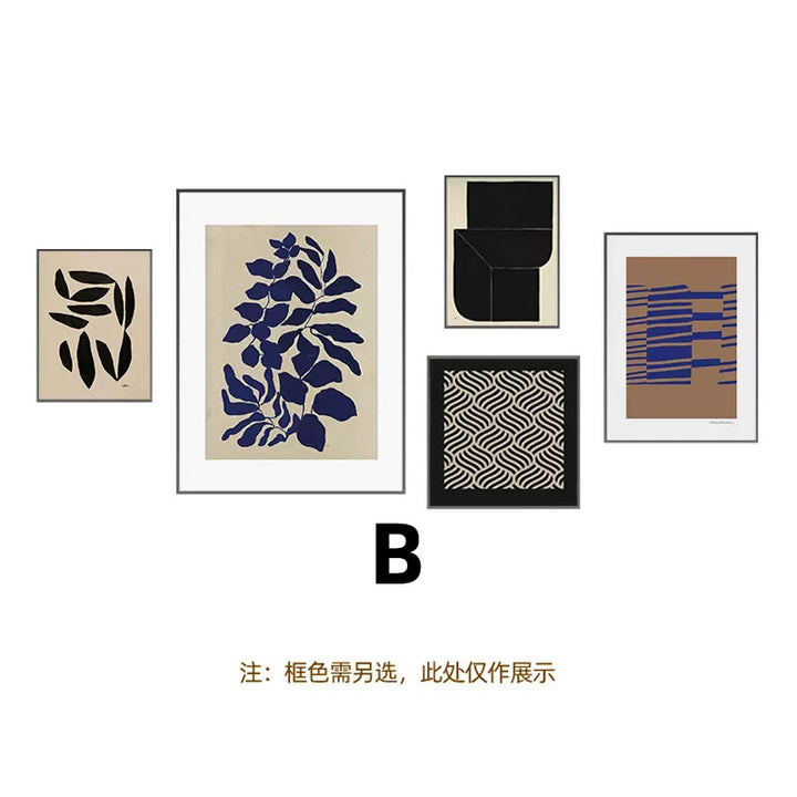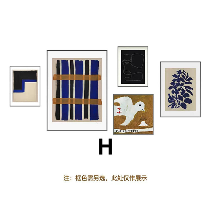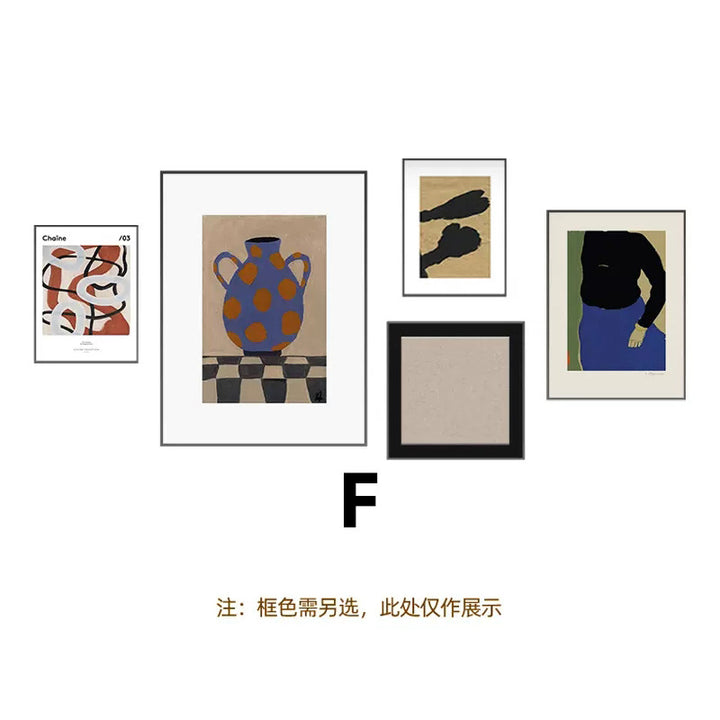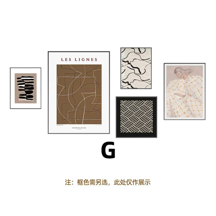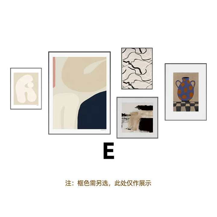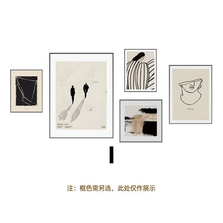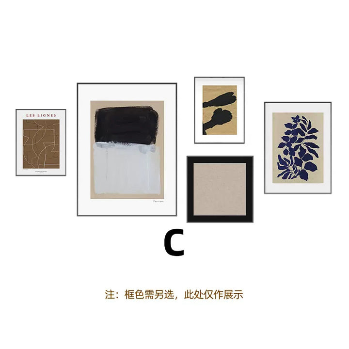 Wabi-sabi wind living room combination decorative painting Nordic style niche sofa background wall mural abstract simple bedroom hanging painting