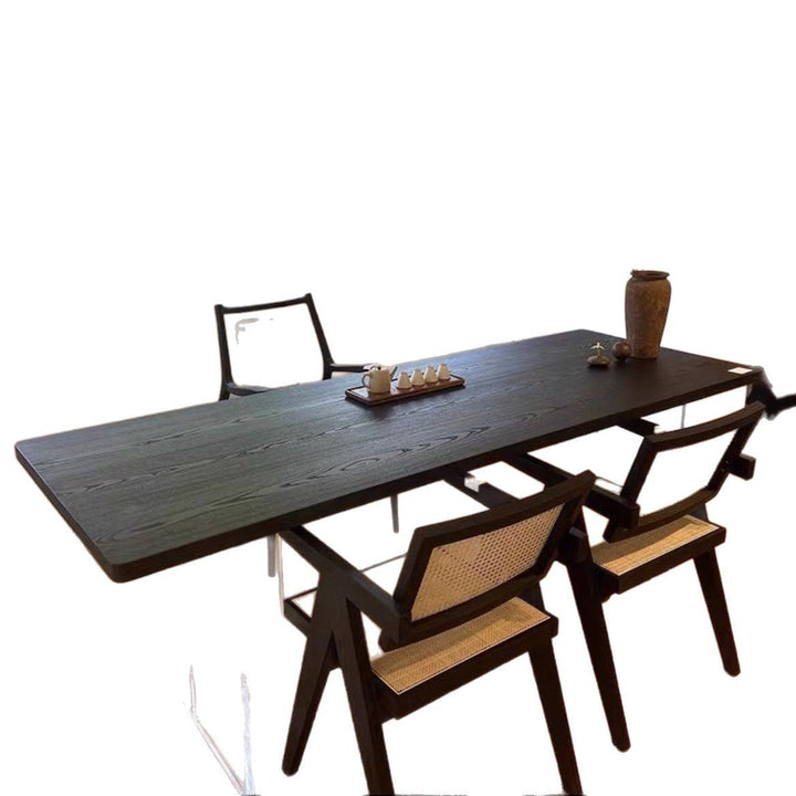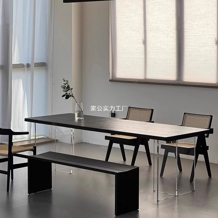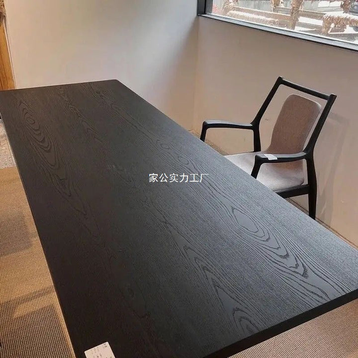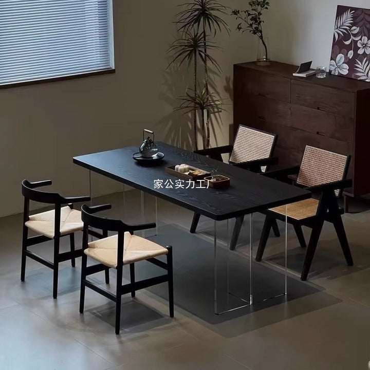 Wabi Sand wind carbonized black solid wood dining table log large board worktable minimalist wind acrylic suspended office tea table