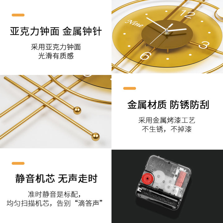 Wall clock light luxury high sense clock home living room modern simple decoration wall hanging fashion creative clock no punching