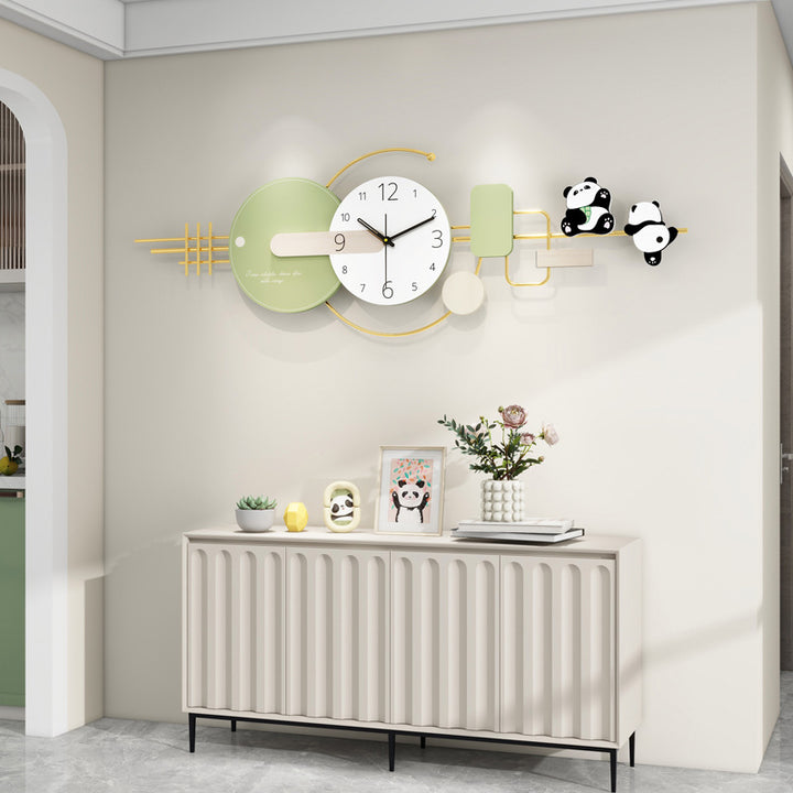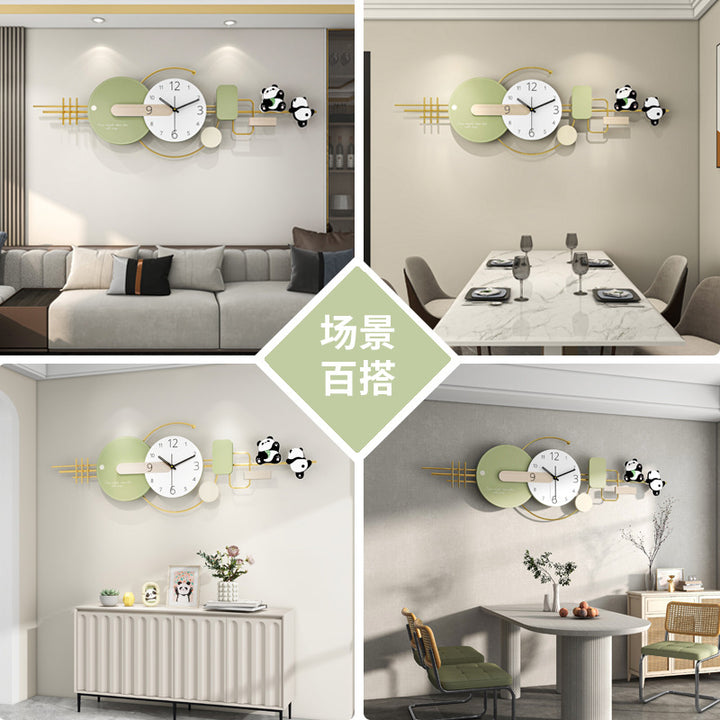 Wall clock living room light luxury clock creative panda decoration home high sense atmosphere dining room wall clock no punching