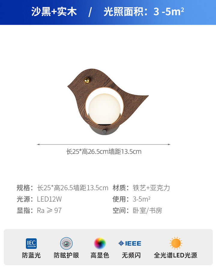 Sand black + solid wood bird bedside lamp 25cm, Sand black + solid wood whale bedside lamp 25cm |
