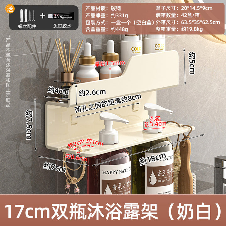 Wall-mounted non-punching bathroom rack, shower gel storage rack on the wall of the bathroom,...
