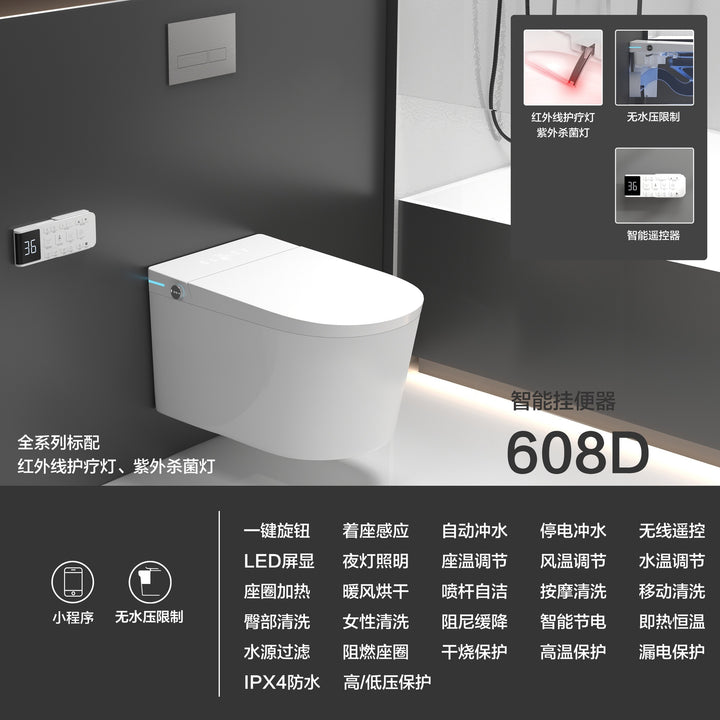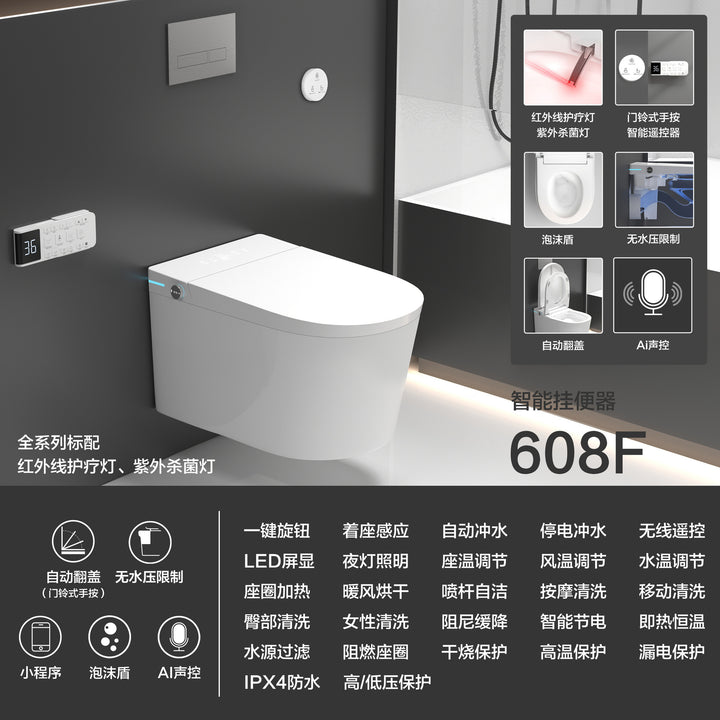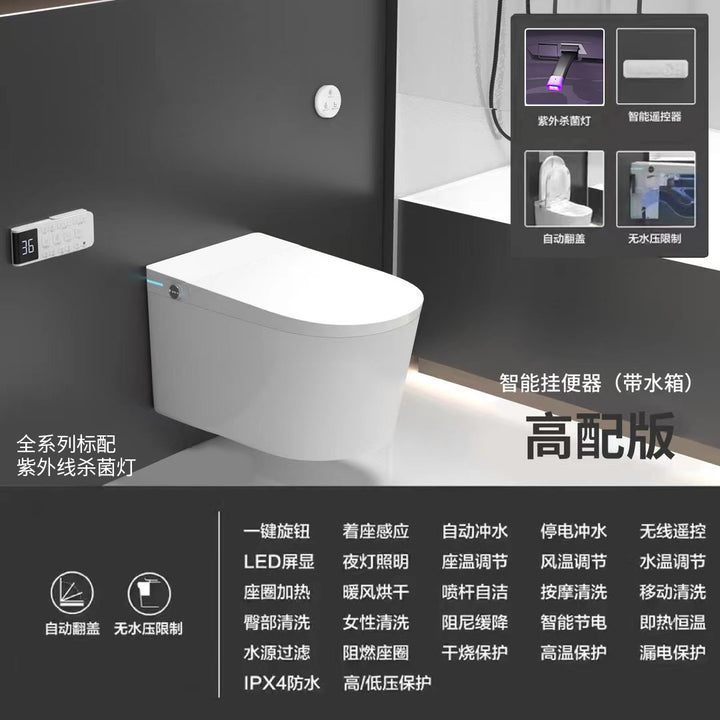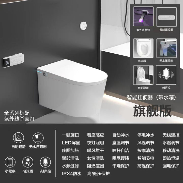 Wall-mounted smart toilet cover, fully automatic embedded hidden water tank, small apartment integrated toilet, induction speed heating