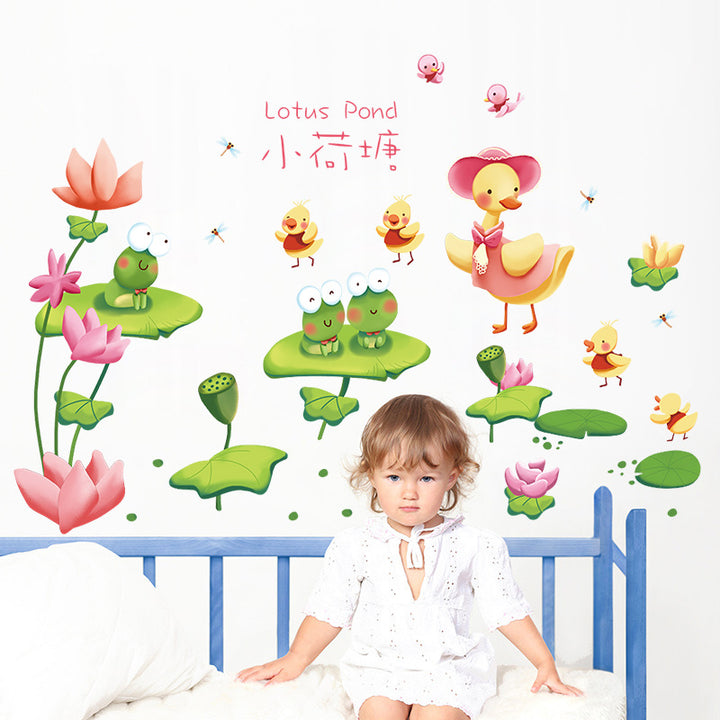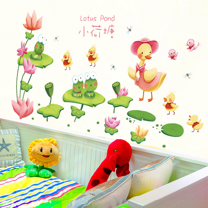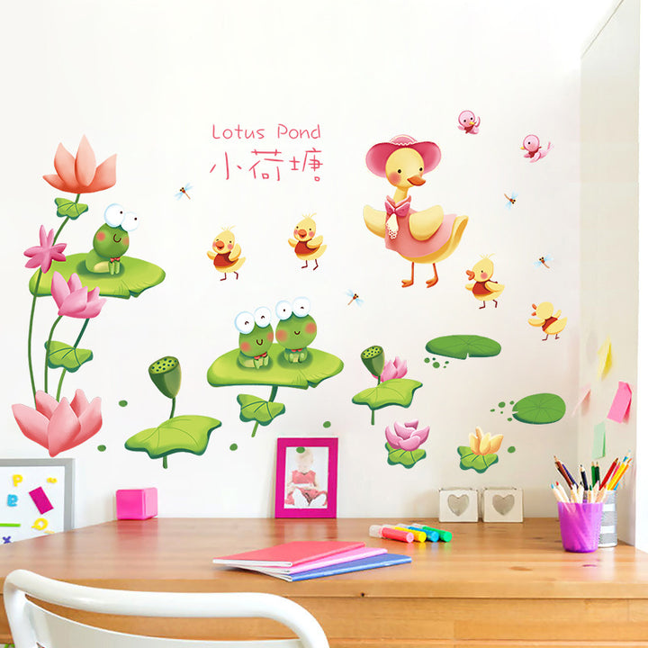 Wall sticker cute cartoon children's room decoration bedroom classroom decoration small lotus...