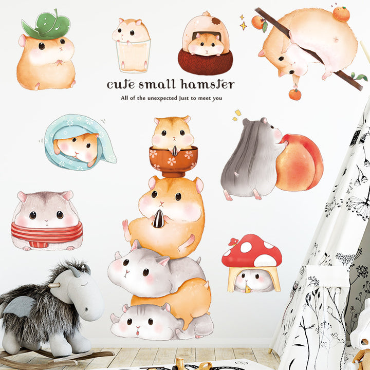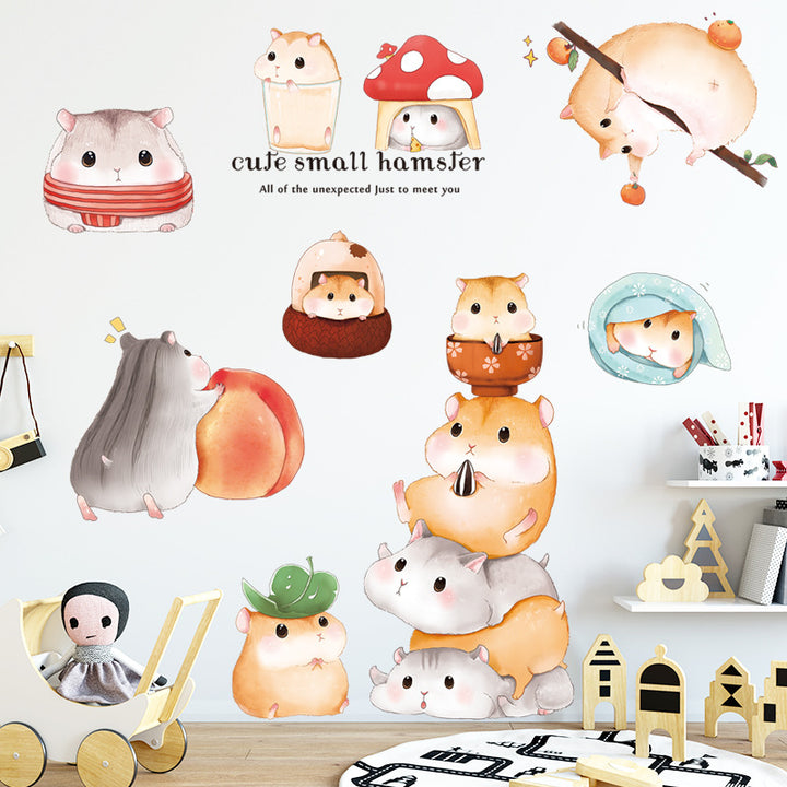 Wall sticker cute cartoon hamster animal cute self-adhesive wall wallpaper children's room picture sticker, melon seed pet