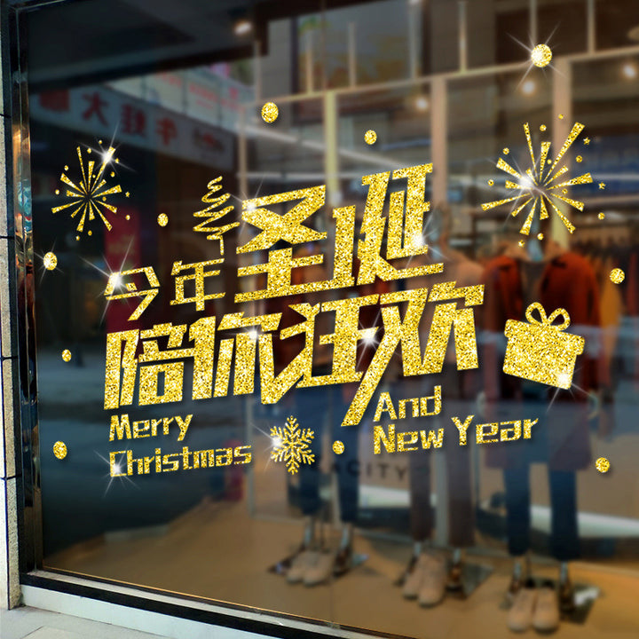 Wall sticker double day Christmas new bright powder to accompany you carnival Christmas decoration glass door sticker removable wall sticker XL6615