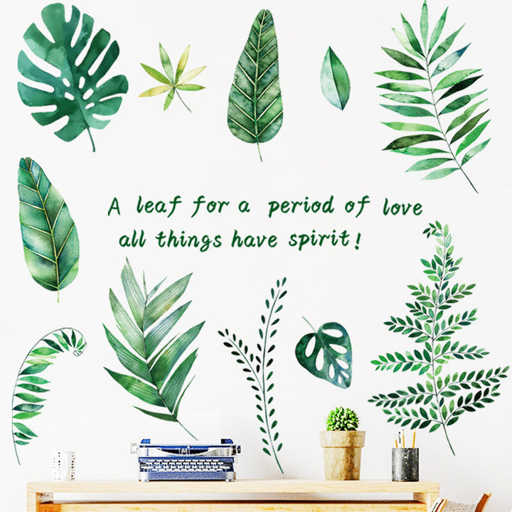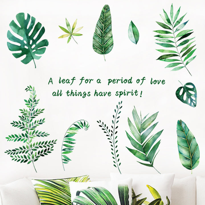 Wall sticker plants green leaves tropical living room bedroom simple fresh bedside Nordic wall ins style sticker self-adhesive
